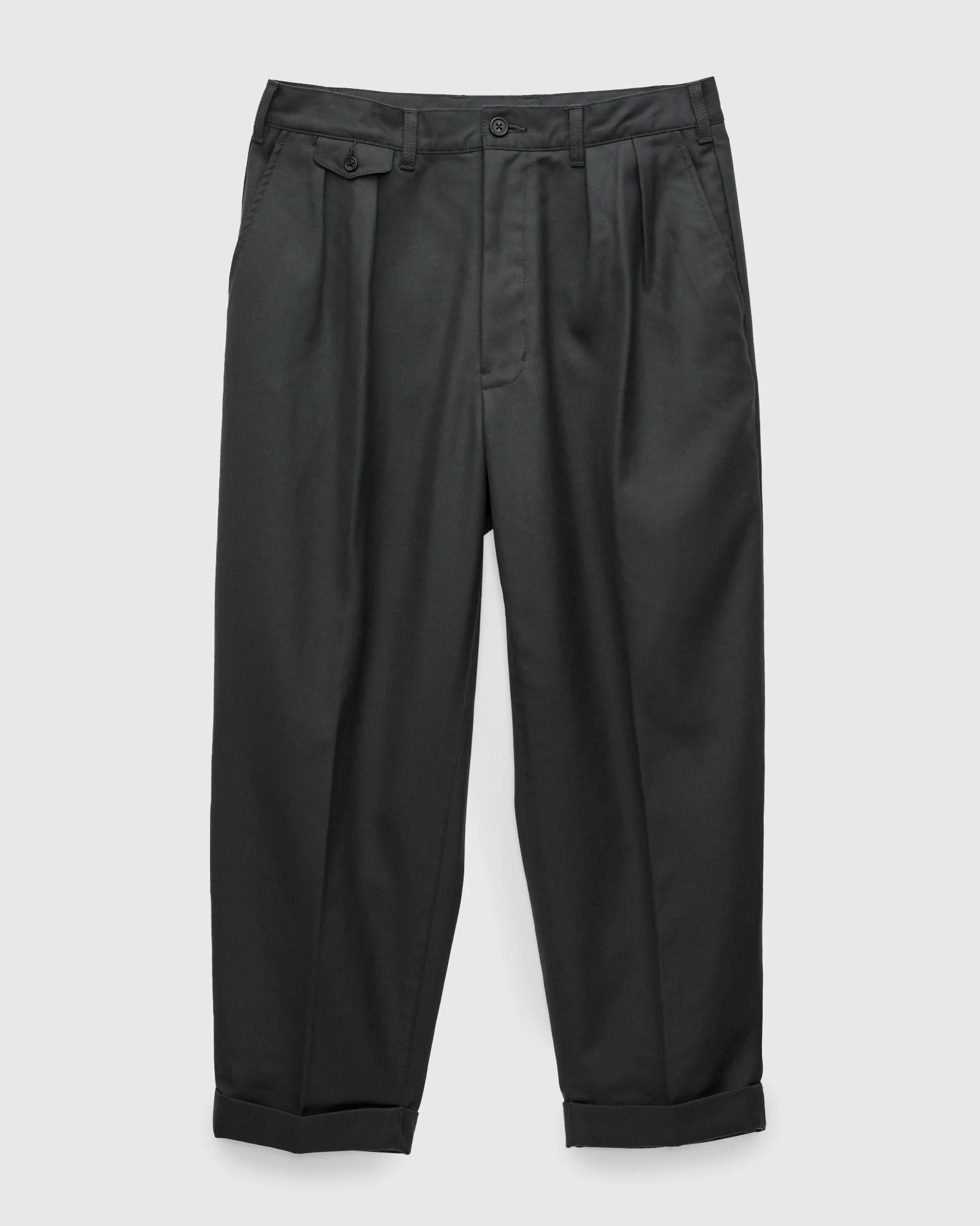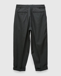 The 2-Pleat Trousers from Beams are pleated slant-pocket trousers, cut in a relaxed tapered cut inspired by 1950s suiting. This iteration features a wool twill fabric woven, dyed, and treated in Oshu, Japan, a region known for its wool production. The fabric has been treated with a finish allowing for laundering. Cut with a slightly cropped hem, the pants are finished with slant pockets at the waist and welt pockets at the rear. - Relaxed tapered fit - Cropped length - Japanese wool twill fabric - Pleated front - Slant waist pockets - Rear welt pockets - Flap ticket pocket - Zipper fly - 100% wool - Made in Japan