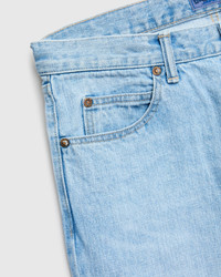 The Worn Out selvedge denim features a wash process that utilizes a range of distressing techniques to achieve an intensive sun-bleached appearance. This effect is created through a combination of stone washing, bleaching, and hand distressing. Blue Blue Japan’s signature selvedge denim is custom woven on vintage shuttle looms to replicate the look and feel of 1970s American blue jeans. Cut in a versatile straight-fit silhouette, the jeans feature a relaxed top block with a straight leg through the hem. - “Worn Out” distress treatment - Vintage 70's mid-weight Japanese selvedge denim fabric - Classic straight fit - Minimal styling without patch or pocket embroidery - Zipper fly - Hammered rivets - Red and white selvedge - 100% cotton - Made in Japan