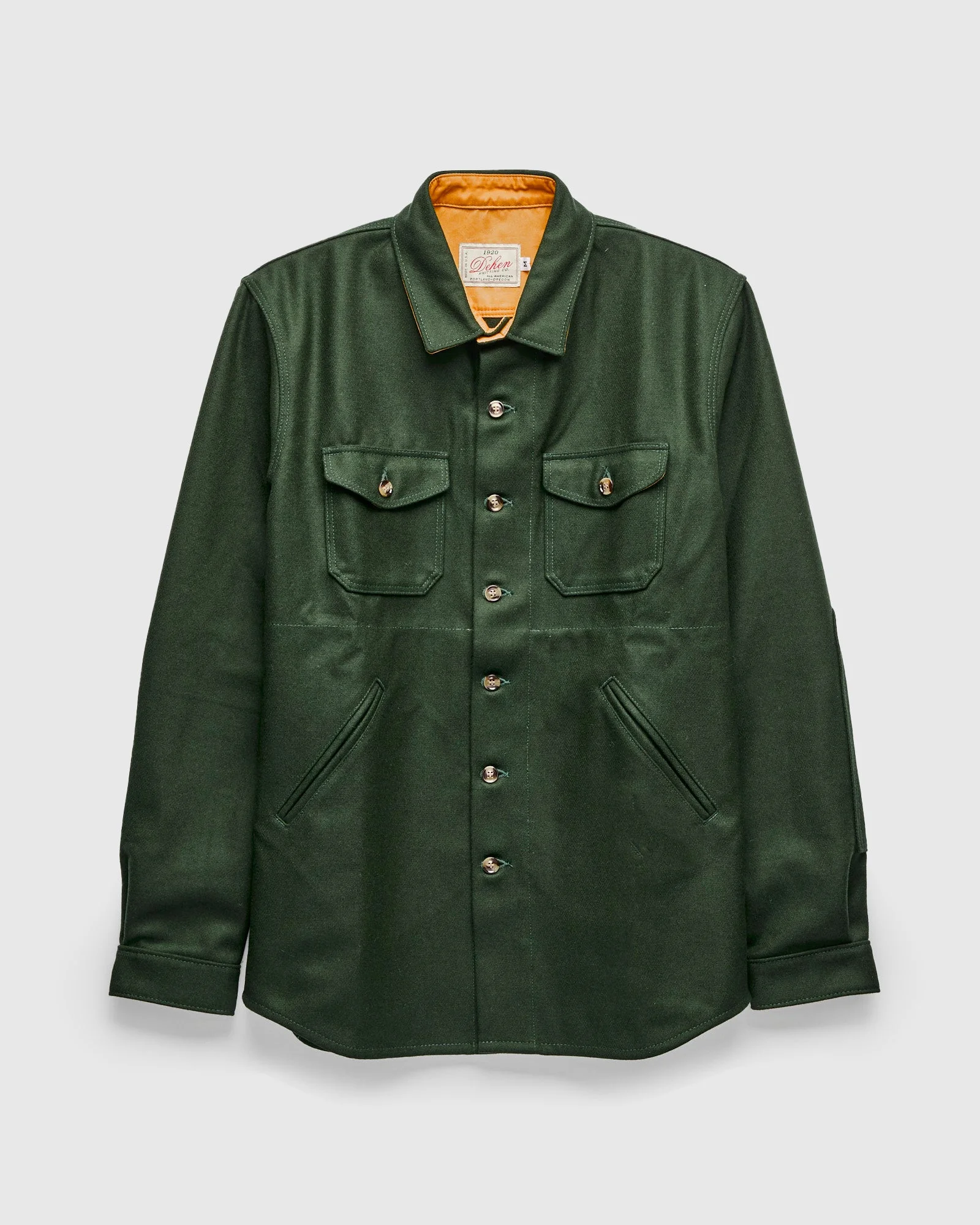 The Crissman from Dehen 1920 is the brand's heavy duty overshirt made entirely at the brand's Portland, Oregon knitting factory. Built using a custom-woven 22oz melton wool, the fabric sports a thick and sturdy feel with a textured soft finish. Cut in a regular shirt-jacket fit, the Crissman Overshirt features a roomy body designed to be worn as a true outerwear piece. Fitted with large chest pockets, double welt hand pockets, reinforced elbows, and cotton lined interior accents. - Regular shirt-jacket fit - 22oz melton wool - Two chest pockets - Welt hand pockets - Keyhole buttonholes - Cotton lined interior accents - Reinforced elbow patches - 85% wool, 15% nylon - Made in Portland, Oregon USA