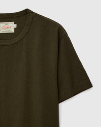 Details Knit, cut, and sewn in the U.S.A, Dehen's Heavy Duty Tee is made using a medium-weight cotton jersey fabric with a durable weave and soft touch. Keeping true to the brand's roots in traditional Americana, the shirt features a classic no-frills design crafted without compromise. Cut in a regular fit, the shirt has undergone a garment dye for a deep color that will continue to change overtime. - Regular fit - 5.6oz cotton Jersey fabric knit in USA - Garment dyed - Self-Bound neck - Blind stitched sleeves and hem - 100% cotton - Made in the USA Brand Info Founded by William Peter Dehen in 1920, the century old maker produces traditional American styles using time-honored methods and classic patterns. With roots in supplying knitwear for colleges in the '20s, riding sweaters for Motorcycle clubs in the '30s, and varsity jackets for student athletes throughout the '50s; the brand continues their long-standing tradition of producing garments with a long-lasting quality and rugged styling, upholding the statement "Heavy Duty. Old School Truth".