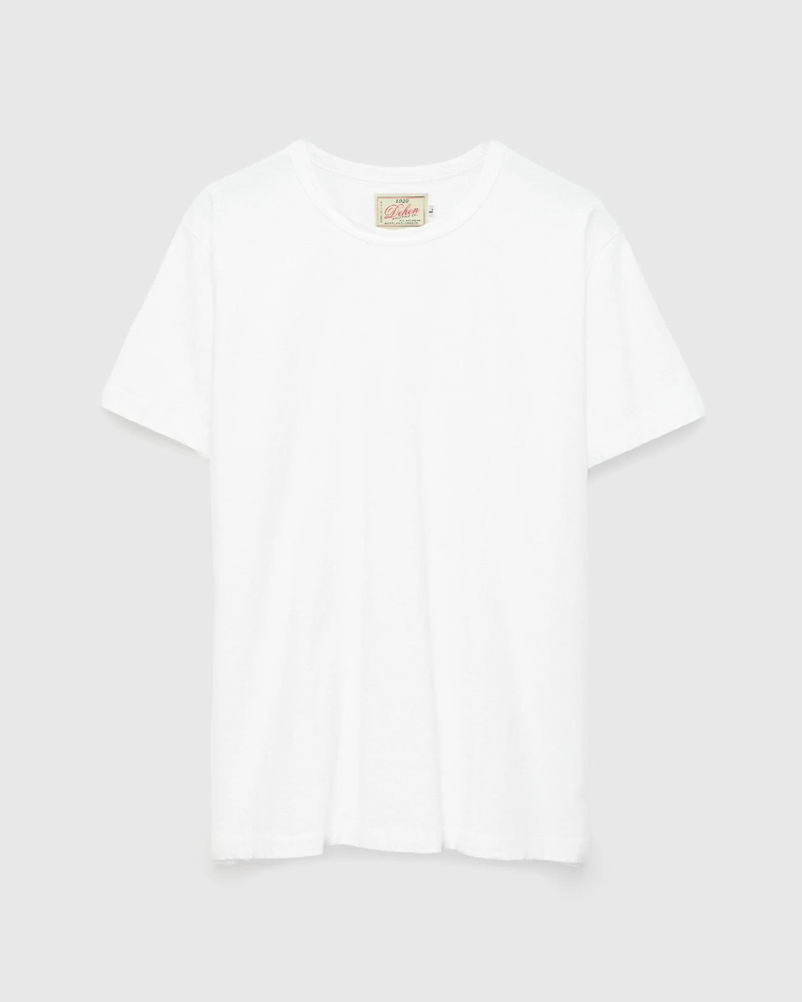 Knit, cut, and sewn in the USA, the Dehen Heavy Duty Tee is crafted from a 5.6oz medium-weight cotton jersey with a durable weave and soft hand feel. Staying true to the brand’s roots in traditional Americana, the tee features a classic, no-frills design. - Regular fit - 5.6oz cotton jersey fabric, knit in the USA - Self-bound neck - Blind-stitched sleeves and hem - 100% cotton - Made in the USA