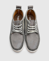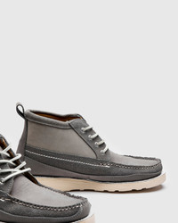 The Backyard BBQ boot puts a hand-sewn spin on the classic "dad" shoe. Built one at a time in Maine, USA, Easymoc's Scout Boot combines the timeless chukka boot silhouette with the durability of double-bottomed trail boots. Produced in small batches, the boots feature a combination nubuck and suede cowhide leather combination. Built for longevity, the shoes are fully resolable and crafted with Blake stitch construction. Finished with an Ortholite® Comfort footbed, Vibram® Cristy rubber outsole, and leather cord laces. - Hand-sewn construction - Grey nubuck and suede leather - Blake stitched - Ortholite® comfort hybrid recycled footbed - Recycled mesh footbed cover - Leather cord laces - Metal eyelets - Vibram® Cristy sole - Fully resolable - Made in Maine, USA