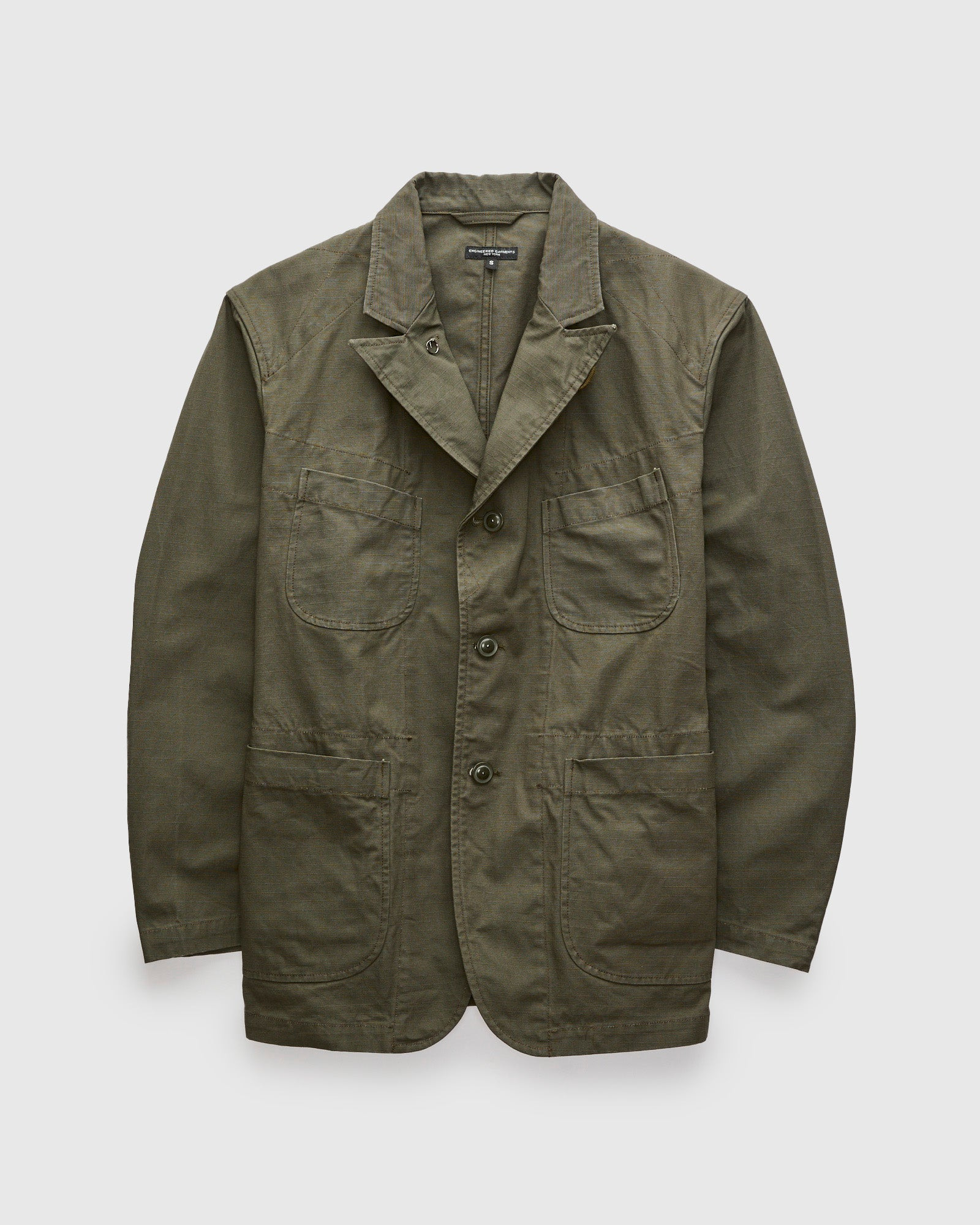 The Bedford Jacket is a signature design from Engineered Garments, blending classic workwear and unstructured tailoring. This iteration is crafted using a burly cotton ripstop fabric with a high tension weave and iconic gridded texture. Designed in a versatile blazer-chore coat silhouette, the jacket features a tailored cut with four patch pockets, peak lapels, and vintage-inspired "change" buttons on the placket. - Tailored fit - Heavyweight cotton ripstop fabric - Heavy-duty resin buttons - Peak lapels - Patch pockets at the waist - Patch pockets at the chest - Reinforcement fabric at stress points - 100% cotton - Made in New York, USA