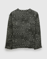 Engineered Garments' Knit Cardigan is a versatile hybrid overcoat-sweater design, jacquard knit using a textured cotton-poly-wool blend in an alternating block pattern. Cut in a relaxed fit the cardigan features a open v-line collar and functions both as an interior layer and stand-alone layering piece. Finished with two large patch pockets at the waist, set-in sleeve design, and button placket. - Relaxed fit - Medium-weight cotton-poly-wool jacquard fabric - Resin button placket - Spread-collar - Patch pockets at the waist - 51% cotton 27% polyester 21% wool 1% other - Made in New York, USA