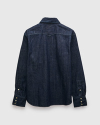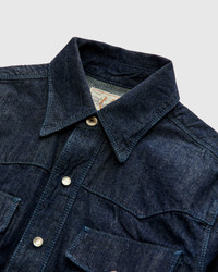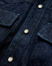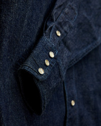 Combining Freenote's Western and Scout shirt silhouettes, this workshirt is sewn using the brands 11oz “1900s” reproduction denim from Japan. Woven on vintage shuttle looms, the fabric features a classic workwear weave and traditional indigo color. Western-inspired details include custom yoke paneling, mother of pearl snap buttons, and exposed selvedge accents at the placket and gusset. - Regular fit - 11oz “1900s” Japanese selvedge denim - Two western-style utility pockets - 1/8" double-needle stitching throughout - Mother of pearl snap buttons - 100% cotton - Made in USA