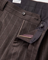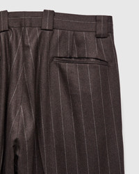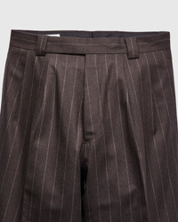 The 2-Pleat Trouser from Kaptain Sunshine is cut with the brand’s relaxed, soft-tailored approach. Made from a lightweight merino wool flannel woven with contrasting stripes, the fabric has a smooth, soft texture and an easy drape. Designed with a high rise and straight leg, the trousers feature a cupro half-lining, tucked belt loops, and two front pleats. - High rise, straight leg - Super 160s merino wool flannel fabric - Double pleated front - Slant trouser pockets - Rear welt pockets - Zipper fly - Lining: 100% cupro - 100% wool - Made in Japan
