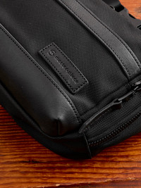 - Cordura 1680 Denier Ballistic Nylon fabric - Japanese oiled cow leather trim - Main storage compartment - Interior mesh zipper pocket - Front quick access pocket - Adjustable shoulder/waist strap - Metaluxe Tough zippers - 100% nylon - Made in Japan - Model no: 43454 One size. Approximately 430g W 210 H 155 D 50 MM
