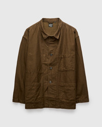 Linen Moleskin Simple Work Jacket in Coffee Brown