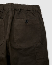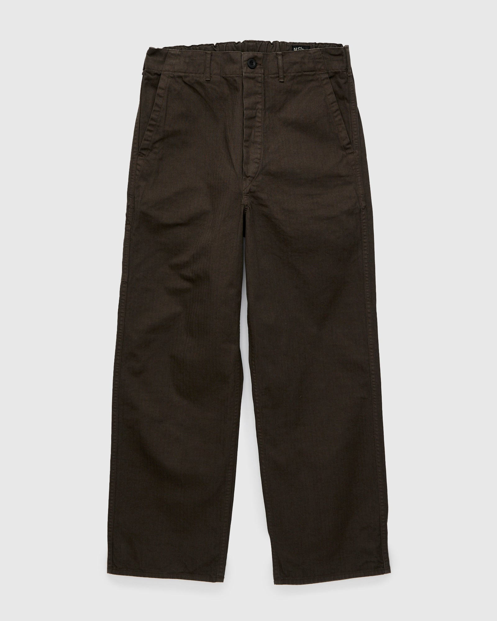 The French Work Pants from orSlow are a classic wide-leg trouser style, accompanied by an assortment of useful pockets. This installment utilizes a mid-weight cotton herringbone with a dry hand and sturdy feel. Finished with an elastic back waistband, button fly, and bartack reinforcement at points of stress. - Wide fit - Mid-weight Japanese herringbone fabric - Elastic back waistband - Button fly - Two slant front pockets - Two patch back pockets, one with button closure - Bartack reinforcements - 100% cotton - Made in Japan