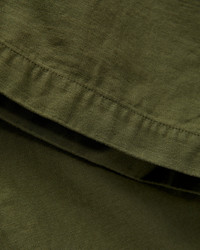orSlow's New Yorker Pant is the Japanese label's multipurpose everyday pant. This relaxed-fit installment utilizes a lightweight, breathable version of their standard fatigue satin with a super-soft touch and superior durability. Equipped with standard New Yorker pants detailing, the pants feature slant pockets at the waist, a rear welt pocket, drawstring elastic waist, and YKK zipper fly. - Japanese reverse satin fabric - Wide fit, high rise and straight leg with slight taper - Elastic waistband with elongated drawstring - YKK zipper fly with resin top button - Rear welt pocket - Bartack reinforcements - 100% cotton - Made in Japan Waist will stretch up to 2" comfortably.