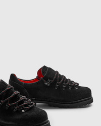 Paraboot's Clusaz is a lug-sole hiker silhouette, inspired by vintage mountaineering shoes from the 60's and 80's. Crafted in France, the shoe features a rugged textured suede upper and vibrant orange liner, a nod to vintage outdoor jackets and climbing gear. The brand's Norwegian welt construction fuses the upper and outsole, a method typically used for mountain and work shoes offering greater protection from the elements and a comfortable fit. The Clusaz comes finished with leather tongue wraps to prevent rocks and water from entering the shoe, D-ring eyelets, and paracord-style laces. - Rough cowhide suede upper - Full calf leather lining - D-ring metal eyelets - Black/orange mountain laces - Layered tongue protection - Norwegian welt construction - Rubber "Jannu" outsole - Made in France
