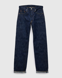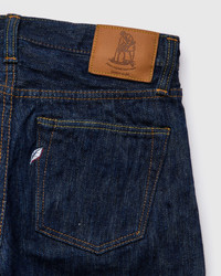 The new Kasuri denim from Pure Blue Japan reinvents their ultra-textured Extra Slub Series denim through traditional Japanese dyeing techniques. Made in small batches in Japan, the denim's subtly varied surface color comes from an intentional uneven dye on the warp yarns, and is accentuated by the wild yarn size variations throughout the fabric. As with other styles in PBJ's catalog, the Kasuri Selvedge is woven on an old-world shuttle loom using a specialized slow weaving technique to produce the unique texture the brand is renowned for. Finished with custom nickel buttons, a deerskin natural leather patch, and the signature Pure Blue Japan indigofera leaf embroidery. - 15oz Japanese slub selvedge denim, rinsed to remove shrinkage - Kasuri dyed warp with white weft - The "Slim Straight" fit from Pure Blue Japan has a medium rise, and is slightly slim in the top block with a straight leg from the knee down - Signature Pure Blue Japan leaf embroidery on back right pocket - Natural leather patch - Blue selvedge line, coin pocket selvedge - Custom branded nickel button fly - Hidden back pocket copper rivets - Raised belt loops - Chain stitched hems - 100% cotton - Made in Japan