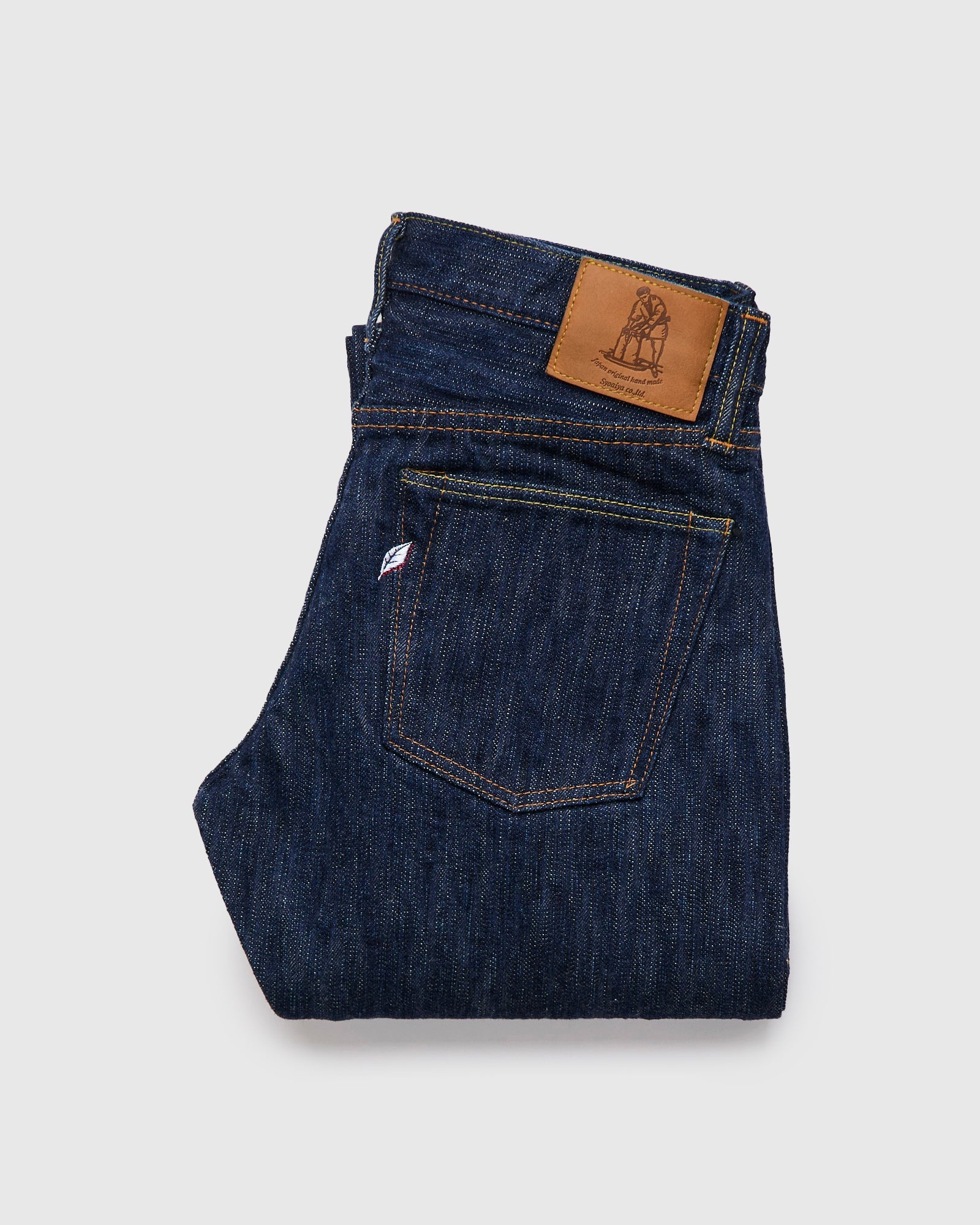 The new Kasuri denim from Pure Blue Japan reinvents their ultra-textured Extra Slub Series denim through traditional Japanese dyeing techniques. Made in small batches in Japan, the denim's subtly varied surface color comes from an intentional uneven dye on the warp yarns, and is accentuated by the wild yarn size variations throughout the fabric. As with other styles in PBJ's catalog, the Kasuri Selvedge is woven on an old-world shuttle loom using a specialized slow weaving technique to produce the unique texture the brand is renowned for. Finished with custom nickel buttons, a deerskin natural leather patch, and the signature Pure Blue Japan indigofera leaf embroidery. - 15oz Japanese slub selvedge denim, rinsed to remove shrinkage - Kasuri dyed warp with white weft - The "Slim Straight" fit from Pure Blue Japan has a medium rise, and is slightly slim in the top block with a straight leg from the knee down - Signature Pure Blue Japan leaf embroidery on back right pocket - Natural leather patch - Blue selvedge line, coin pocket selvedge - Custom branded nickel button fly - Hidden back pocket copper rivets - Raised belt loops - Chain stitched hems - 100% cotton - Made in Japan
