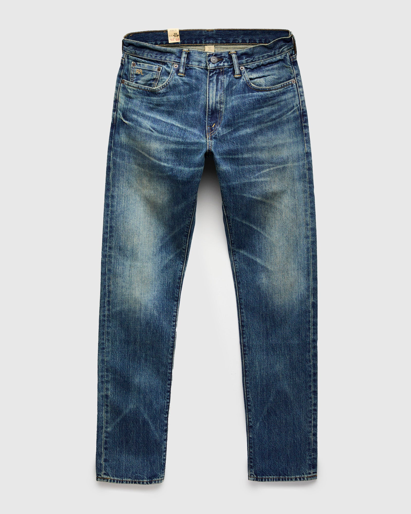Cut from 13.75oz right-hand twill Japanese denim in a dusty indigo color, these jeans from RRL have undergone a transformative wash process to give the garment a unique worn-in tone. Fitted with all American hardware, debossed logo patch, and additional signature RRL details, these jeans capture the spirit of the west with authentic vintage styling and construction. - 13.75oz washed indigo Japanese denim - The RRL Slim Fit is a sleek tapered silhouette with a medium rise, medium thigh, and taper from the knee down - RRL branded patch - Custom RRL branded rivets and hardware - RRL embroidery atop coin pocket - Printed twill pocket bags - Button fly - 100% cotton - Made in Mexico
