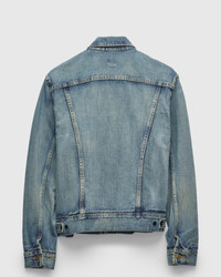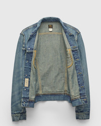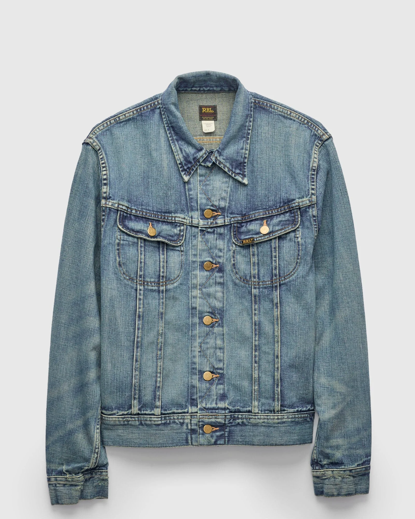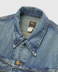 Crafted from washed and faded medium-weight Japanese denim, the Lot 271 Jacket from RRL takes inspiration from '50s trucker jackets and come sanforized ready to wear. Finished with 'RRL Cowboy' branded hardware, the jacket features a vintage wash process giving the fabric the look and feel of a well worn garment. Cut in a 1950s inspired trucker fit the jacket finished with zig-zag top stitching at the center placket, double-needle reinforced stitching, and two slant patch pockets at the chest. - Regular fit - 13.6oz Japanese denim fabric - Vintage wash/finish - Two patch pockets at chest - Zig-zag placket stitching - 'RRL Cowboy' hardware - 100% cotton