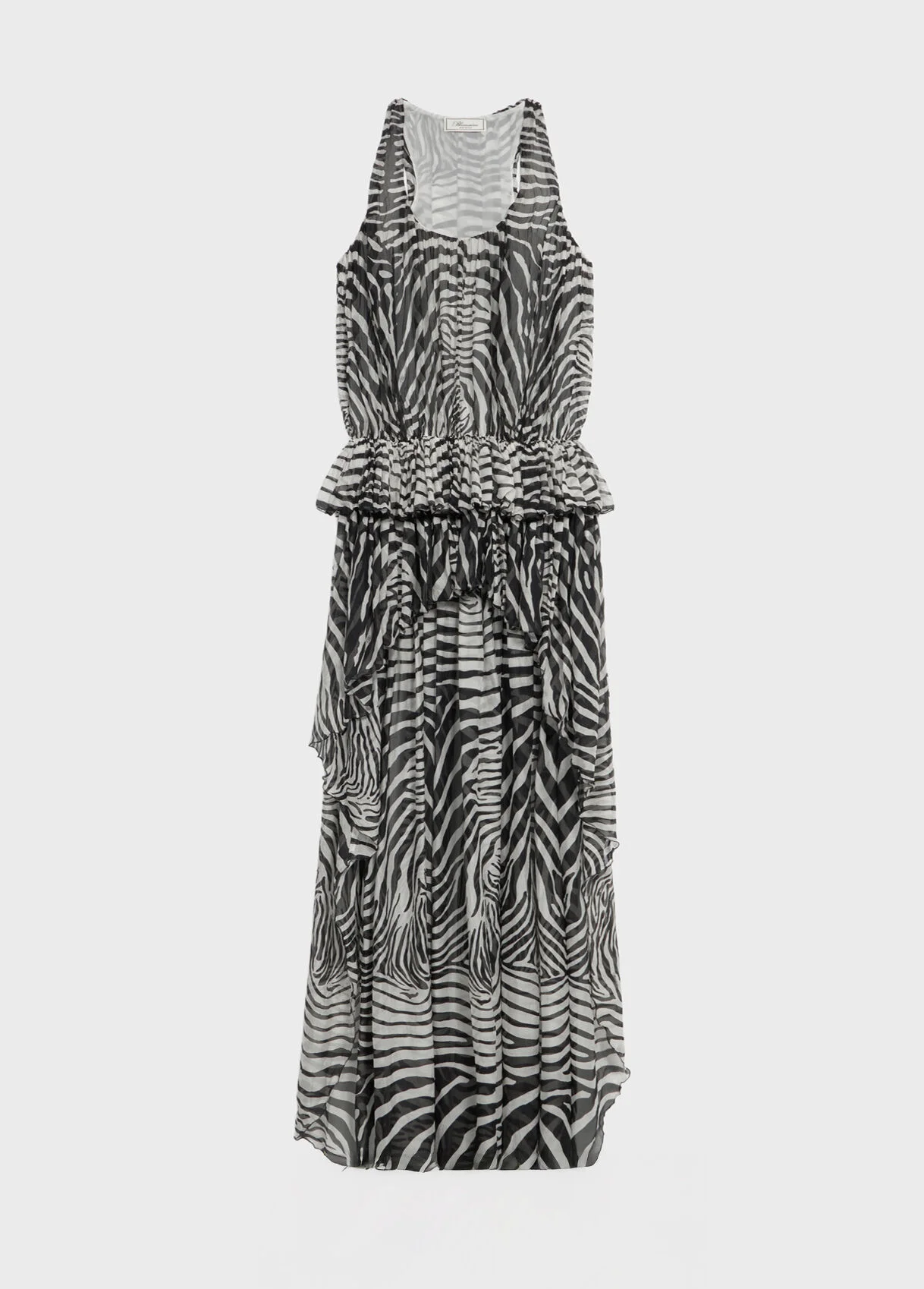 ASYMMETRICAL ZEBRA-PRINT CHIFFON DRESS