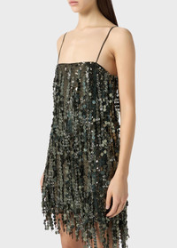 Hand embroidery in mirrored sequin threads, bugle beads, and flowers for this mini dress with fringed hem. - Hand embroidery in mirrored sequin threads, bugle beads, and flowers - Straight line - Sleeveless cut - Shoulder pads - Straight neckline - Frayed bottom - Low-cut back - Mini length - Regular fit composition: 100%pa DETAILS To find the correct size for you, please consult the Size Guide. Composition: Main fabric: 100% polyamide; Main lining: 100% polyester; Embroidery: 100% polyvinyl chloride (PVC) Do not wash; Do not bleach; Do not tumble dry; Iron at low temperature - no steam; Dry clean with hydrocarbons - gentle cycle; Wash separately; Wash inside out; Wash in a mesh bag; Iron inside out; Do not iron trims; Iron by interposing a cloth