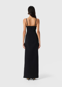 long dress in double crepe with heart neckline, metal rose detail, deep side slit. - Double crepe - Shaped silhouette - Metal flower application - Heart neckline - Sleeveless - Shoulder straps - Side slit - Back neckline - Zip closure at the back - Inner lining - Ankle length - Regular fit - Made in Italy DETAILS To find the correct size for you, please consult the Size Guide. Composition: Main fabric: 95% polyester, 5% elastane; Main lining: 100% polyester Do not wash; Do not bleach; Do not tumble dry; Iron at low temperature - no steam; Dry clean with tetrachloroethylene or hydrocarbons - gentle cycle; Reshape after cleaning; Protect trims during clean; Clean inside out; Iron inside out
