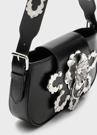 medium long toy bag in hard leather with flower detail, central ring, and metal studs on the flap. - Medium long toy bag - Hard leather - Flower and metal ring - Metal studs - Adjustable strap - Internal lining - Magnetic closure - Made in Italy DETAILS To find the correct size for you, please consult the Size Guide. Composition: Main lining: 100% cotton; Accessory: 100% zamak;Leather: bovine Do not wash; Do not bleach; Do not tumble dry; Do not iron; Do not dry clean; Professional leather clean only