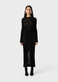 midi dress composition: velour with a see-through stripe pattern, long sleeves, back slit. - Composition: velour with a see-through stripe pattern - Round neckline - Long sleeves - Back slit - Midi length - Body-fit - Made in Italy DETAILS To find the correct size for you, please consult the Size Guide. Composition: Yarn 1: 100% viscose; Yarn 2: 100% polyester Hand wash - room temperature; Do not bleach; Do not tumble dry; Iron at low temperature - no steam; Dry clean with tetrachloroethylene or hydrocarbons - gentle cycle; Dry flat in shade; Wash inside out; Wash in a mesh bag