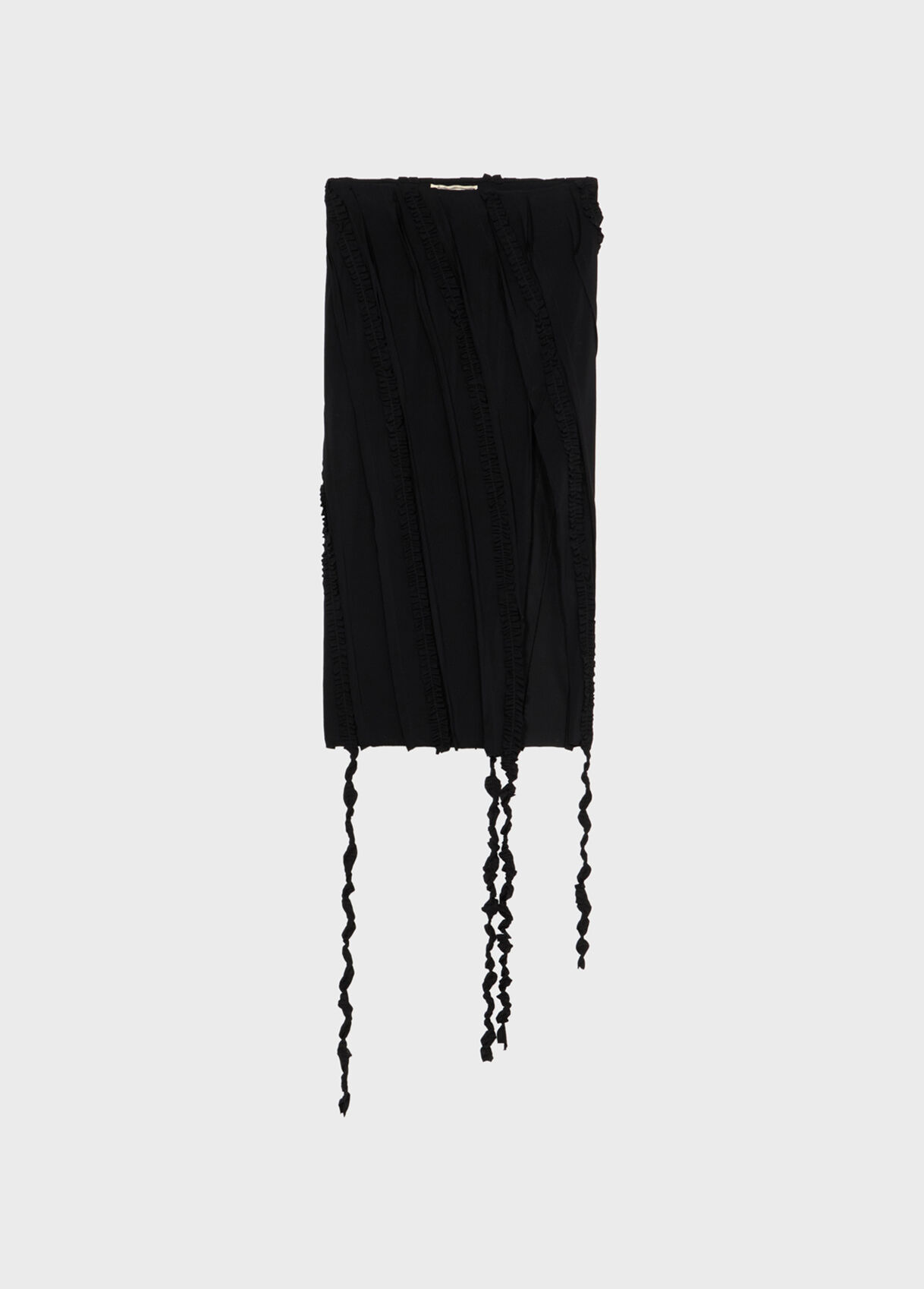 Viscose crepe jersey midi skirt with raw-edge inlays, single leg slit, and ruffled hem. - Viscose crepe jersey - Raw-edge inlay design - Vent at the leg - Ruffles at hem - Midi-length - Body-hugging fit - Made in Italy DETAILS To find the correct size for you, please consult the Size Guide. Composition: Main fabric: 94% viscose, 6% elastane Wash delicate cycle max 30°C; Do not bleach; Do not tumble dry; Iron at low temperature - no steam; Dry clean with tetrachloroethylene or hydrocarbons - gentle cycle; Dry flat in shade; Wash inside out; Gentle spin; Iron inside out