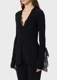 RIBBED CARDIGAN WITH LACE RUFFLES