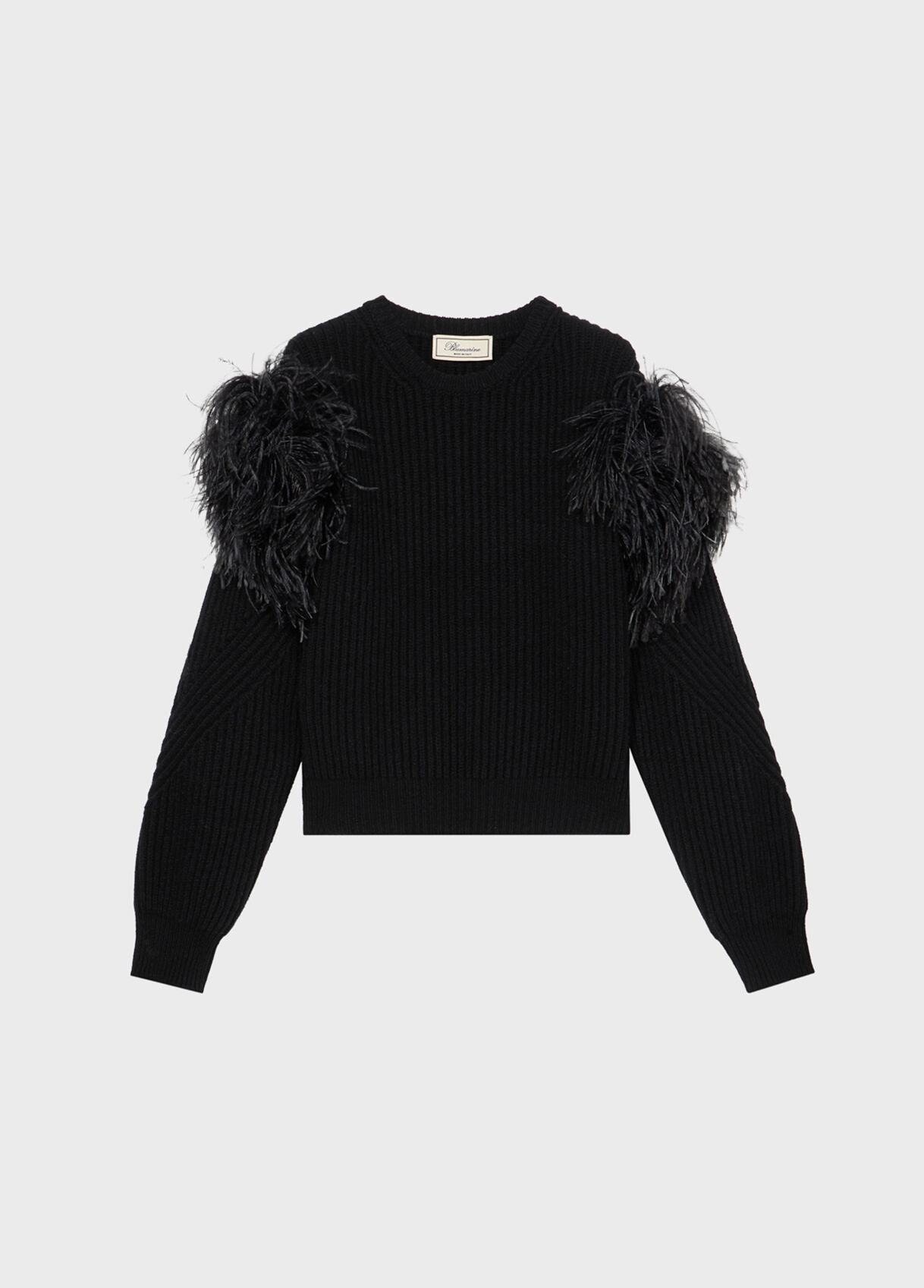 RIBBED WOOL SWEATER WITH FEATHERS