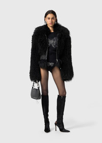shearling bomber with collar, oversized sleeves, quilted insert at waist. - Shearling - Bomber style - Collar - Oversized long sleeves - Quilting at waist - Zip closure - Regular fit - Made in Italy DETAILS To find the correct size for you, please consult the Size Guide. Composition: Leather: lamb Do not wash; Do not bleach; Do not tumble dry; Do not iron; Do not dry clean; Do not expose to direct heat; Professional fur clean only