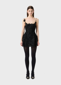 Short dress in macrame lace with straps and bodice enriched with fabric flower applications. - Macrame lace - Sleeveless - Straps - Straight neckline - Fabric flowers applied on straps and bodice - Back neckline - Zip closure at the back - Inner lining - Mini length - Regular fit - Made in Italy DETAILS To find the correct size for you, please consult the Size Guide. Composition: Main fabric: 100% polyester; Main lining: 100% polyester Wash delicate cycle max 30°C; Do not bleach; Do not tumble dry; Iron at low temperature - no steam; Dry clean with tetrachloroethylene or hydrocarbons - gentle cycle; Wash inside out; Gentle spin; Iron inside out