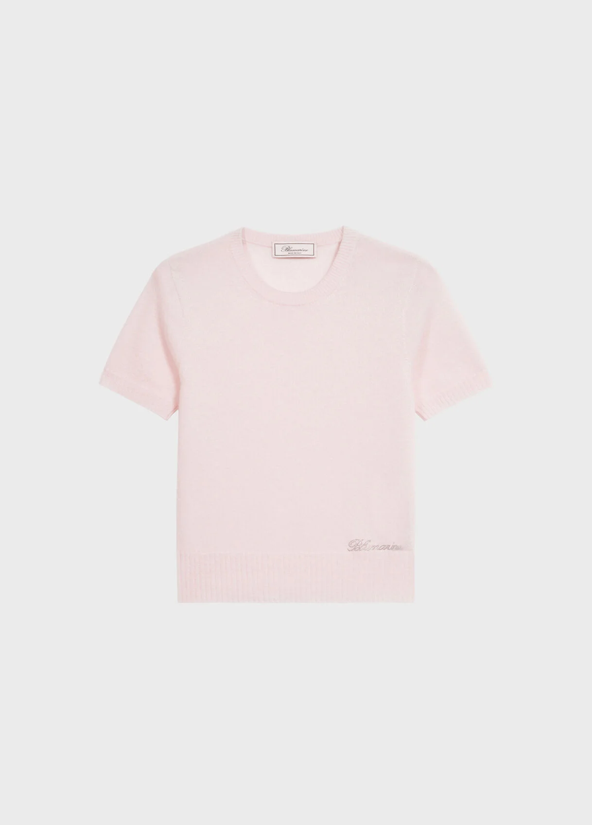 Pure cashmere jumper with a round neck, short sleeves, and a wide ribbed hem. - Pure cashmere - Round neck - Short sleeves - Wide ribbed hem - Ribbed trims - Regular fit - Made in Italy DETAILS Composition: Embroidery: 100% Glass; External fabric: 100% Cashmere Hand wash - room temperature; Do not bleach; Do not tumble dry; Iron at low temperature - without steam; Do not dry clean; Dry flat; Wash separately; Do not expose to direct heat sources; Wash inside out; Do not iron decorations
