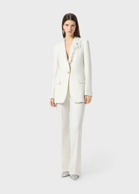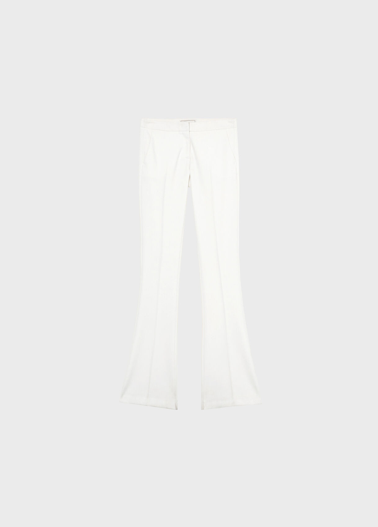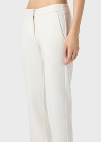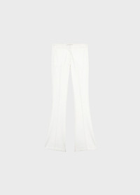 Straight-leg pants in twill with side pockets, back welt pockets, and regular fit. - Twill and wool blend - Straight leg - Pockets at the hips - Zipper and concealed button closure - Welt pockets at back - Metal tag with blumarine logo on the back - Regular fit DETAILS To find the correct size for you, please consult the Size Guide. Composition: Main fabric: 54% polyester, 44% virgin wool, 2% elastane; Fabric 2: 57% viscose, 43% polyester Do not wash; Do not bleach; Do not tumble dry; Iron at low temperature - no steam; Dry clean with tetrachloroethylene or hydrocarbons - gentle cycle; Wash inside out; Iron inside out