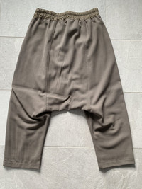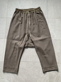 Rick Owens mainline cropped pants from the mastodon collection. These are made from 100% wool in a very light and airy woven material. The colour says DNA dust but I feel like they’re slightly lighter than the normal brown DNA dust colour. These are more tan. The material is beautiful but it’s so delicate. If you have any questions, feel free to ask.