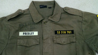 ELvis Presley Army Jacket "A303" 📌DM me for best offer @ buy it now "KINDLY READ DISCRIPTION CAREFULLY BEFORE BUYING" MANUAL MEASUREMENTS: Widt (Armpit to Armpit): 25" Sleeve (shoulder to cuff): 26" Hem: 24" Legth: 30" CONDITION:- used but in good condition. please do not expect it to be like new or in pristine condition. 💥Please refer picture carefully for details and descriptions of any imperfection... All sales are final.. For further questions, don't hesitate to ask. 💥The colour may be varied due to pixel and lighting effect. 💥Please check Measurement and compare to your favorite garment for proper fit (Item Measured with -+1cm DIFFER and taken on flat ground). SHIPPING: The item buy over $120 and above will be shipped by DHL EXPRESS it take 4-7 working day to reached. The item buy below $120 will be shipped by DHL e-Commerce it take 14-21 working day to reached. 😎 Buy With Confidence Shipment method comes with tracking numbers. For delivery use, please leave your phone number and detail after purchased the item. 📌No return,exchange or refund. All sales are final. One an item has shipped, it is no longer my responsibility 💰 Accept payment : PayPal ONLY 😊 THANK YOU SO MUCH😊.