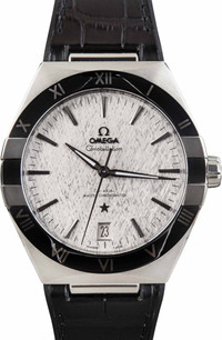 Why We Love This Watch Pre-owned Omega Constellation ref. 131.33.41.21.06.001 (2021) combines bold design with precision engineering. Its 41 mm stainless steel case features signature half-moons and “claws,” framed by a polished black ceramic bezel with Liquidmetal Roman numerals. Silk-embossed rhodium-grey dial displays a date at 6 o’clock, with blackened hands, indexes, and OMEGA logos creating a striking contrast. Mounted on a black leather strap with rubber lining, this Constellation is powered by the Co-Axial Master Chronometer Calibre 8900, visible through a domed sapphire caseback, delivering Swiss-certified chronometry and timeless, commanding style. WATCH DETAILS BRAND OMEGA MODEL NAME Constellation MODEL NUMBER 131.33.41.21.06.001 YEAR 2021 ITEM NUMBER 182841 CONDITION Excellent GENDER Mens BOX & PAPERS Box and Papers CASE MATERIAL Stainless Steel CRYSTAL Sapphire SIZE 41MM BEZEL Ceramic Roman CASEBACK Exhibition SERIAL 82141XXX DIAL Slate w/ Index hour markers, Luminous hands & Luminous lume MOVEMENT CALIBRE 8900 TYPE Automatic BEZEL Fixed COMPLICATION Date BRACELET MATERIAL Leather TYPE Leather CLASP Foldover