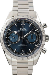 Why We Love This Watch A modern tribute to a legend, this Omega Speedmaster ’57 ref. 332.12.41.51.03.001 blends vintage-inspired design with cutting-edge innovation. The 40.5mm stainless steel case comes fitted with an upgraded matching stainless steel bracelet (not leather) and features a rich blue dial with “Broad Arrow” hands, rhodium-plated hour markers, and Super-LumiNova accents. Powered by the manual-winding Co-Axial Master Chronometer Calibre 9906, this chronograph channels the spirit of the original 1957 Speedmaster while offering exceptional precision and everyday versatility. WATCH DETAILS CREDIT CARD PRICE $8,741.36 BRAND OMEGA MODEL NAME Speedmaster MODEL NUMBER 332.12.41.51.03.001 YEAR 2023 ITEM NUMBER 175863 CONDITION Excellent GENDER Mens BOX & PAPERS Box and Papers CASE MATERIAL Stainless Steel CRYSTAL Sapphire SIZE 41MM BEZEL Stainless Steel Tachymetric SERIAL 84390XXX DIAL Blue w/ Index hour markers, Luminous hands & Luminous lume MOVEMENT CALIBRE 9906 TYPE Manual BEZEL Fixed COMPLICATION Chronograph BRACELET MATERIAL Stainless Steel CLASP Foldover