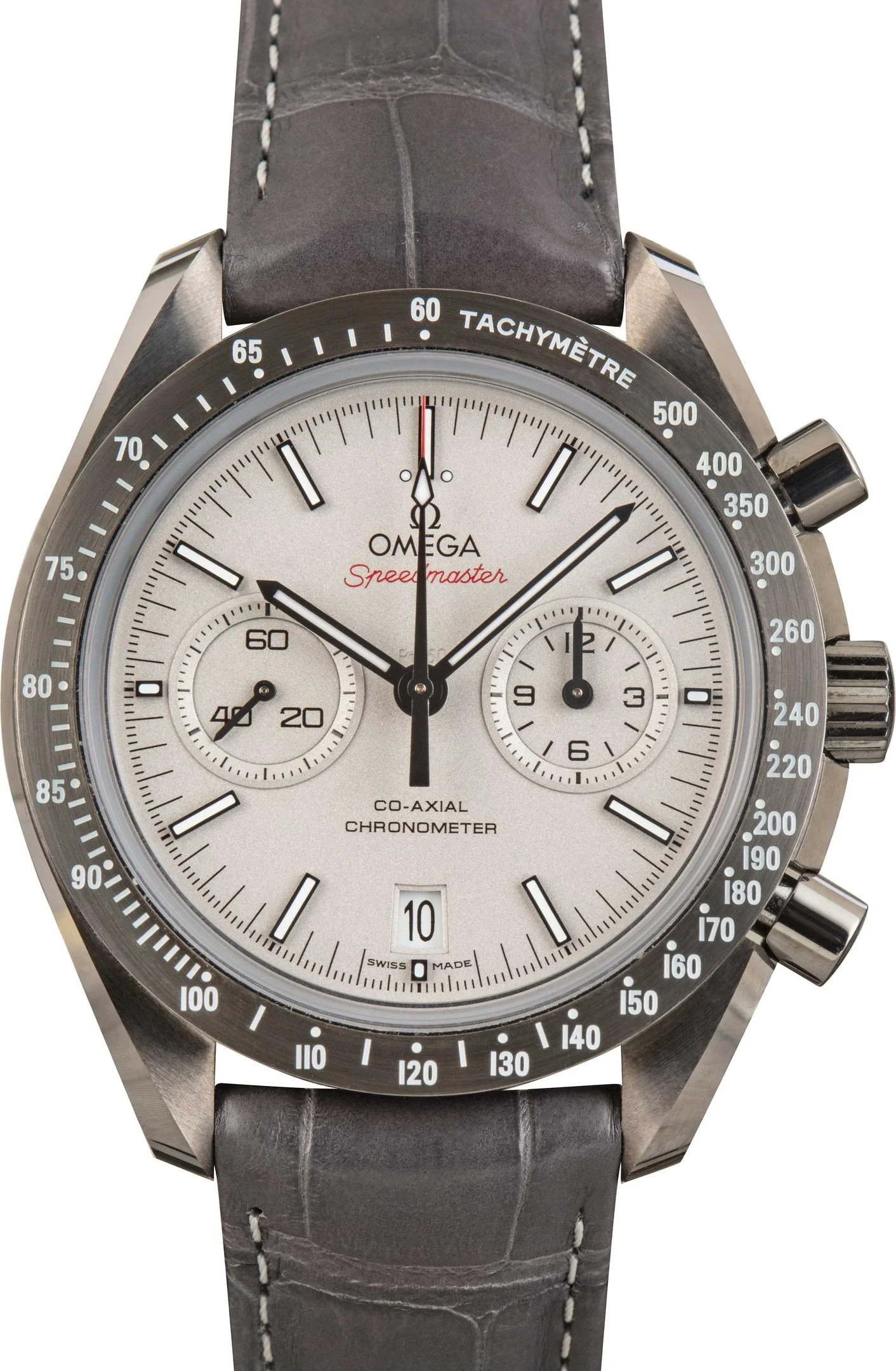Why We Love This Watch OMEGA’s Speedmaster “Grey Side of the Moon” combines innovation with iconic design. Featuring a grey ceramic case, sand-blasted platinum 950 dial, Moonwatch-style hands, and a ceramic bezel with white Super-LumiNova tachymeter, this timepiece is built for both style and performance. It includes a 60-minute and 12-hour recorder at 3 o’clock, a small seconds sub-dial at 9 o’clock, and is powered by the OMEGA Co-Axial calibre 9300, visible through the bevelled sapphire crystal caseback. WATCH DETAILS CREDIT CARD PRICE $9,255.86 BRAND OMEGA MODEL NAME Speedmaster COLLECTION NAME Dark Side of the Moon MODEL NUMBER 311.93.44.51.99.001 YEAR 2015 ITEM NUMBER 182318 CONDITION Excellent GENDER Mens BOX & PAPERS Box and Papers CASE MATERIAL Ceramic CRYSTAL Sapphire SIZE 45MM BEZEL Ceramic Tachymetric CASEBACK Exhibition SERIAL 86408XXX DIAL Platinum w/ Index hour markers, Luminous hands & Luminous lume MOVEMENT CALIBRE 9300 TYPE Automatic BEZEL Fixed COMPLICATION Chronograph BRACELET MATERIAL Leather TYPE Leather CLASP Tang Buckle