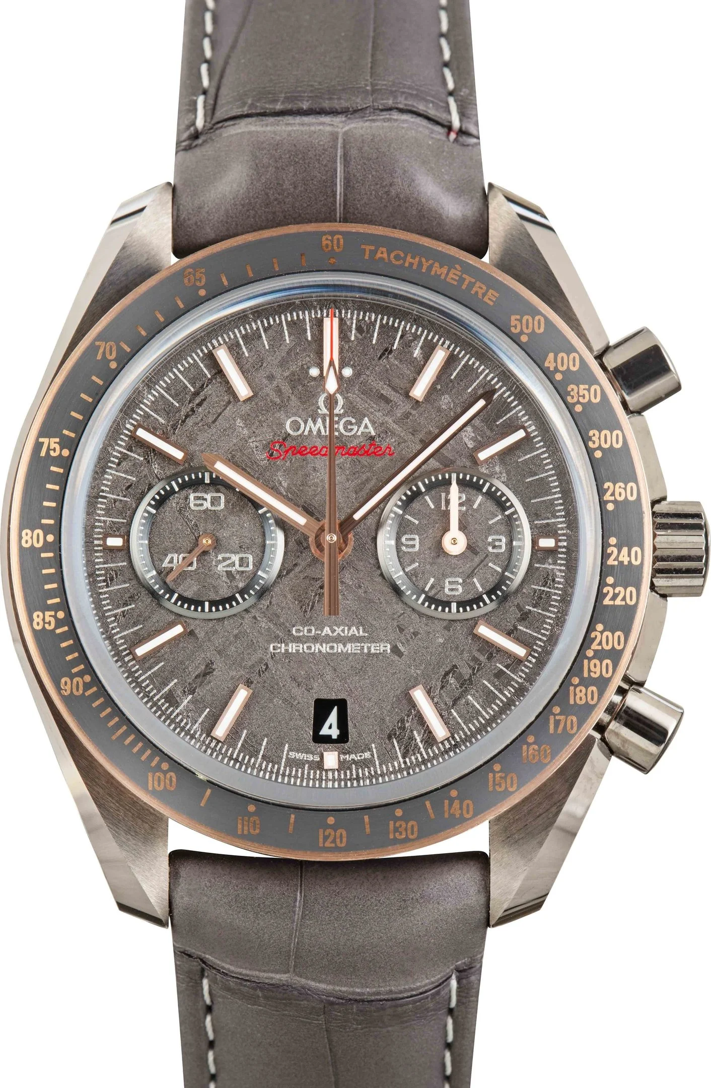 Why We Love This Watch Pre-owned Omega Speedmaster Dark Side of the Moon ref. 311.63.44.51.99.001 (2022) features a 44.25mm grey ceramic case with 18K Sedna gold Moonwatch-style hands, an 18K Sedna gold bezel with a silicon nitride ring, and a brushed ceramic tachymeter scale. Its meteorite dial, acid-etched from solid extra-terrestrial stone, includes a small seconds sub-dial at 9 o’clock, and 60-minute and 12-hour chronograph counters at 3 o’clock. Powered by the Co-Axial Calibre 9300, visible through a bevelled sapphire caseback, it is finished on a grey leather strap with a titanium foldover clasp, combining unique material artistry with professional chronograph performance. WATCH DETAILS CREDIT CARD PRICE $12,857.36 BRAND OMEGA MODEL NAME Speedmaster MODEL NUMBER 311.63.44.51.99.001 YEAR 2022 ITEM NUMBER 183090 CONDITION Excellent GENDER Mens BOX & PAPERS Box and Papers CASE MATERIAL Ceramic CRYSTAL Sapphire SIZE 45MM BEZEL 18k Rose Gold Tachymetric CASEBACK Exhibition SERIAL 83824XXX DIAL Meteorite w/ Index hour markers, Luminous hands & Luminous lume MOVEMENT CALIBRE 9300 TYPE Automatic BEZEL Fixed COMPLICATION Chronograph BRACELET MATERIAL Leather TYPE Leather CLASP Foldover