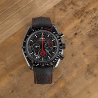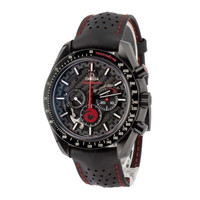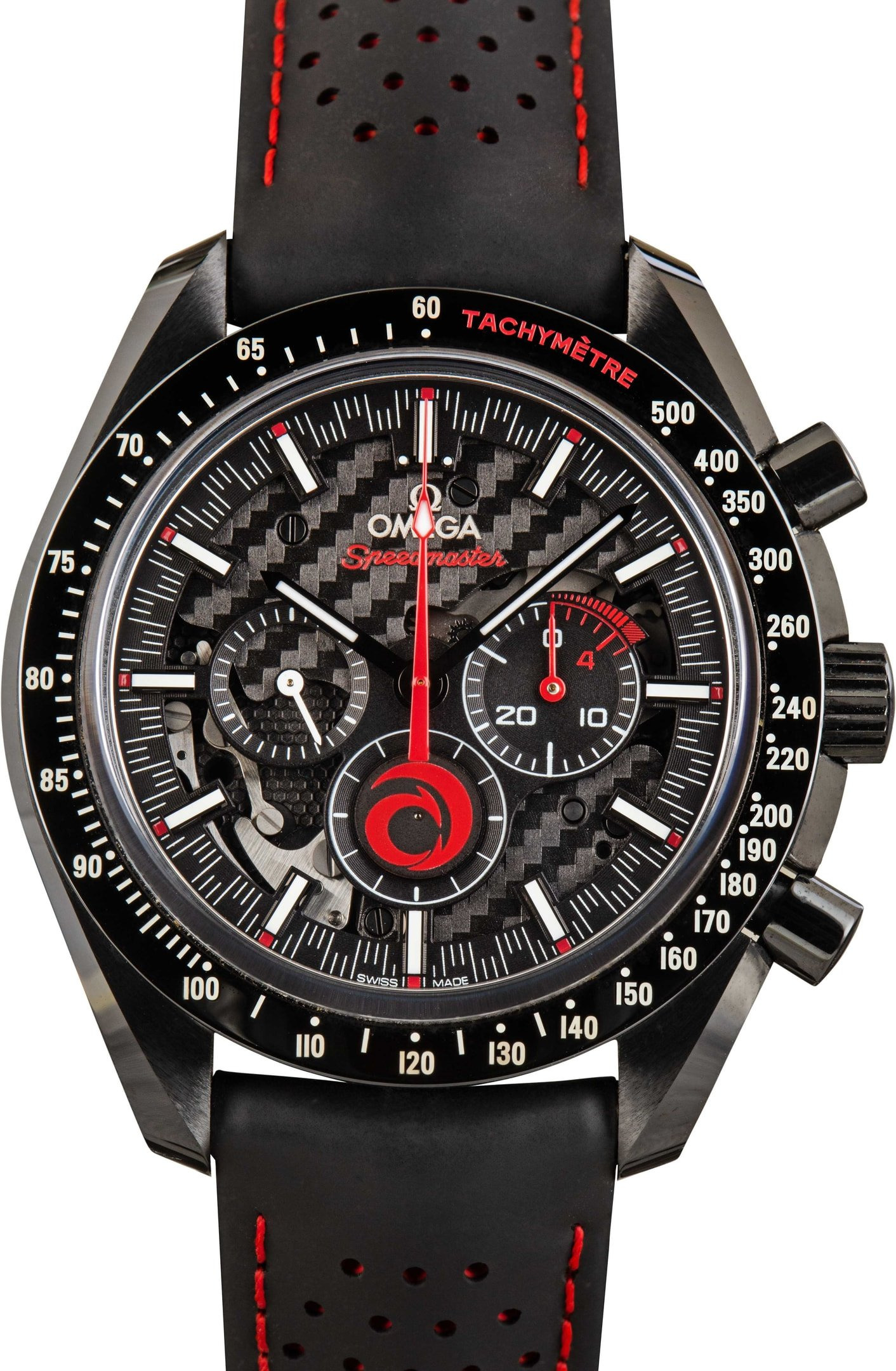 Why We Love This Watch Pre-owned Omega Speedmaster Dark Side of the Moon ref. 311.92.44.30.01.002 (2020). Crafted in 44.25mm black ceramic, this innovative chronograph celebrates OMEGA’s partnership with ALINGHI. The watch features a tachymeter scale in Super-LumiNova, a perforated black rubber strap with red rubber lining, and an ALINGHI-branded red varnish start/stop pusher. The skeletonized dial showcases the Calibre 1865 with laser-ablated honeycomb effects on the mainplate and barrel bridge, and black carbon-patterned bridges inspired by the ALINGHI TF35 catamaran hull. Functionality includes a 4- and 5-minute countdown on the 3 o’clock subdial and a sandblasted anodized aluminum disc with ALINGHI logo at 6 o’clock, combining technical mastery with a bold, sporty aesthetic. WATCH DETAILS CREDIT CARD PRICE $8,226.86 BRAND OMEGA MODEL NAME Speedmaster MODEL NUMBER 311.92.44.30.01.002 YEAR 2020 ITEM NUMBER 181119 CONDITION Excellent GENDER Mens BOX & PAPERS Box and Papers CASE MATERIAL Ceramic CRYSTAL Sapphire SIZE 45MM BEZEL Ceramic Ceramic CASEBACK Exhibition SERIAL 78896XXX DIAL Black w/ Index hour markers, Luminous hands & Luminous lume MOVEMENT CALIBRE 1865 TYPE Manual BEZEL Fixed COMPLICATION Chronograph BRACELET MATERIAL Rubber TYPE Rubber CLASP Tang Buckle