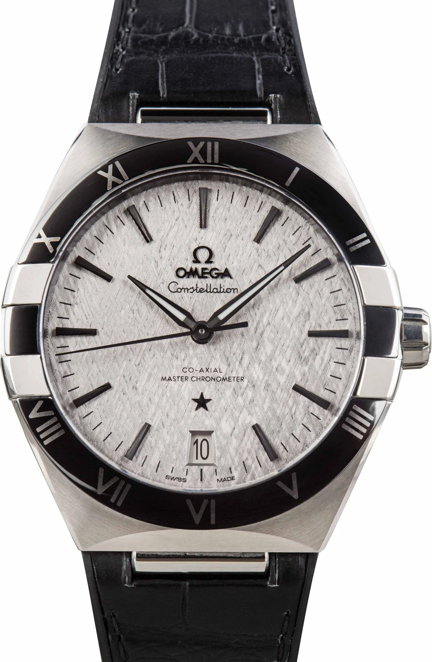 Why We Love This Watch This pre-owned Omega Constellation ref. 131.33.41.21.06.001 (2024) features a 41mm stainless steel case with the collection’s signature half-moon facets and “claws.” The polished black ceramic bezel is engraved with Liquidmetal Roman numerals, framing a silk-embossed rhodium-grey dial with blackened hands, indexes, and a date window at 6 o’clock. Powered by the Co-Axial Master Chronometer Caliber 8900, visible through a sapphire caseback, it ensures certified precision and reliability. Paired with a black leather strap with rubber lining, this Constellation blends modern design with classic Omega craftsmanship. WATCH DETAILS CREDIT CARD PRICE $6,168.86 BRAND OMEGA MODEL NAME Constellation MODEL NUMBER 131.33.41.21.06.001 YEAR 2024 ITEM NUMBER 183601 CONDITION Excellent GENDER Mens BOX & PAPERS Box and Papers CASE MATERIAL Stainless Steel CRYSTAL Sapphire SIZE 41MM BEZEL Ceramic Roman CASEBACK Exhibition SERIAL 83947XXX DIAL Slate w/ Index hour markers, Luminous hands & Luminous lume MOVEMENT CALIBRE 8900 TYPE Automatic BEZEL Fixed COMPLICATION Date BRACELET MATERIAL Leather TYPE Leather CLASP Foldover