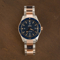 Why We Love This Watch This Omega Seamaster 300 ref 233.60.41.21.03.001 (2022) showcases a sophisticated blend of materials and design. Housed in a 41mm titanium case, it features an 18k Sedna gold bezel with a blue ceramic insert, adding a luxurious contrast. This blue dial combines index and Arabic numerals for a clean, legible look. This two-tone titanium and Sedna gold bracelet enhances its refined appeal, while the Omega Caliber 8400 provides exceptional precision and anti-magnetic performance. WATCH DETAILS CREDIT CARD PRICE $9,770.36 BRAND OMEGA MODEL NAME Seamaster COLLECTION NAME Seamaster 300 MODEL NUMBER 233.60.41.21.03.001 YEAR 2022 ITEM NUMBER 174132 CONDITION Excellent GENDER Mens BOX & PAPERS Box and Papers CASE MATERIAL Titanium CRYSTAL Sapphire SIZE 41MM BEZEL Ceramic Timing SERIAL 87246XXX DIAL Blue w/ Arabic hour markers, Luminous hands & Luminous lume MOVEMENT CALIBRE 8400 TYPE Automatic BEZEL Unidirectional COMPLICATION No Date BRACELET MATERIAL Two-Tone CLASP Deployant