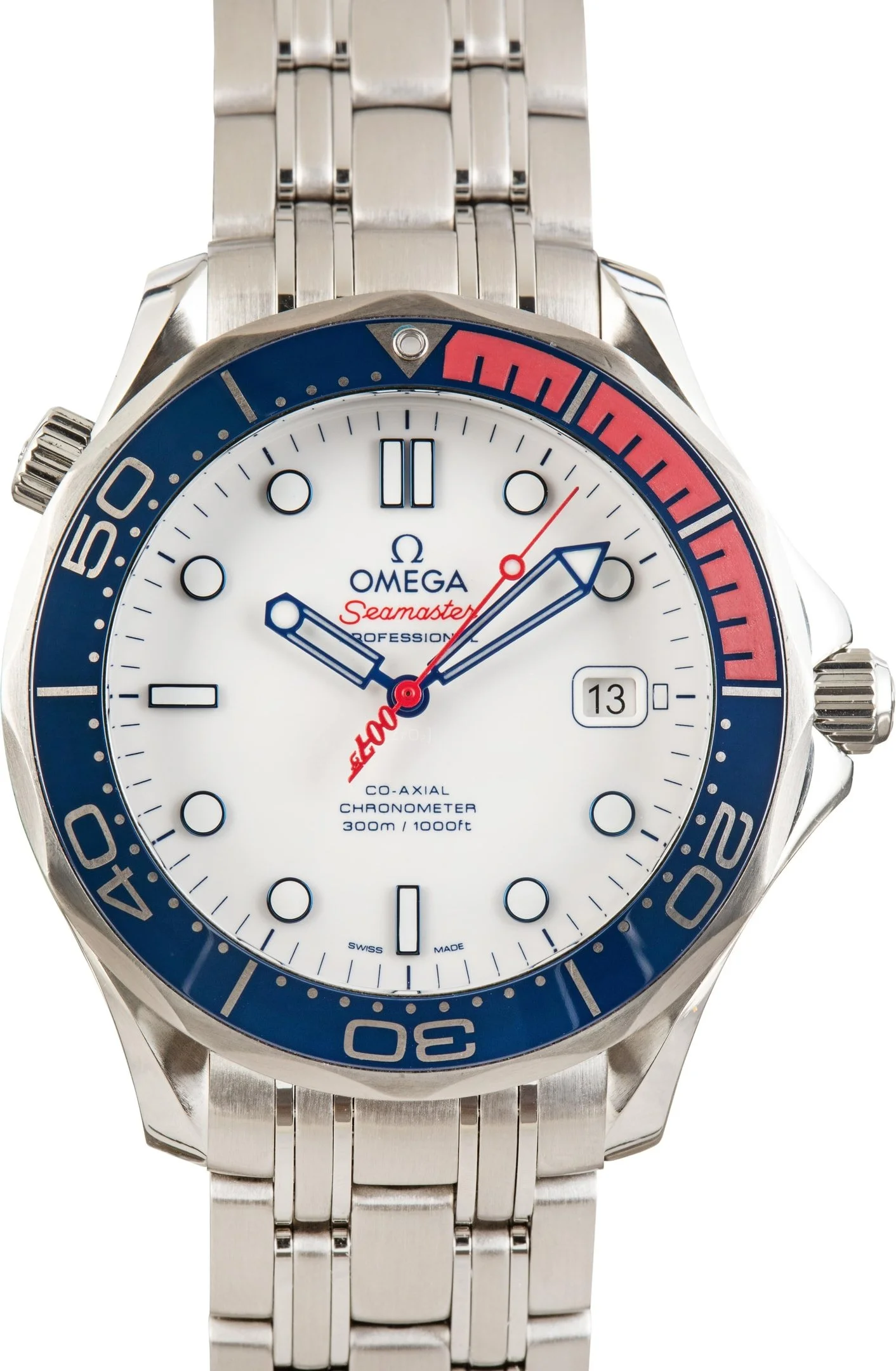 Why We Love This Watch This pre-owned Omega Seamaster Diver 300M ref 212.32.41.20.04.001 (2017) combines refined design with professional dive capability. It features a 41mm stainless steel case and a crisp white dial with luminous hands and hour markers for superior legibility. Protected by a domed, anti-reflective sapphire crystal, it offers water resistance up to 300 meters and is powered by the automatic Omega Caliber 2507 with a 48-hour power reserve. Measuring 47.4mm lug-to-lug and 12.8mm thick, it wears comfortably on the wrist while weighing approximately 96g. A perfect blend of performance and elegance, this Seamaster stands out as a versatile and reliable companion both above and below the surface. WATCH DETAILS CREDIT CARD PRICE $6,477.56 BRAND OMEGA MODEL NAME Seamaster COLLECTION NAME Diver 300M MODEL NUMBER 212.32.41.20.04.001 YEAR 2017 ITEM NUMBER 184197 CONDITION Excellent GENDER Mens BOX & PAPERS Box and Papers CASE MATERIAL Stainless Steel CRYSTAL Sapphire SIZE 41MM BEZEL Stainless Steel Timing CASEBACK Exhibition SERIAL 89371XXX DIAL White w/ Luminous hour markers, Luminous Skeleton hands & Luminous lume MOVEMENT CALIBRE 2507 TYPE Automatic BEZEL Unidirectional COMPLICATION Date BRACELET MATERIAL Stainless Steel CLASP Deployant