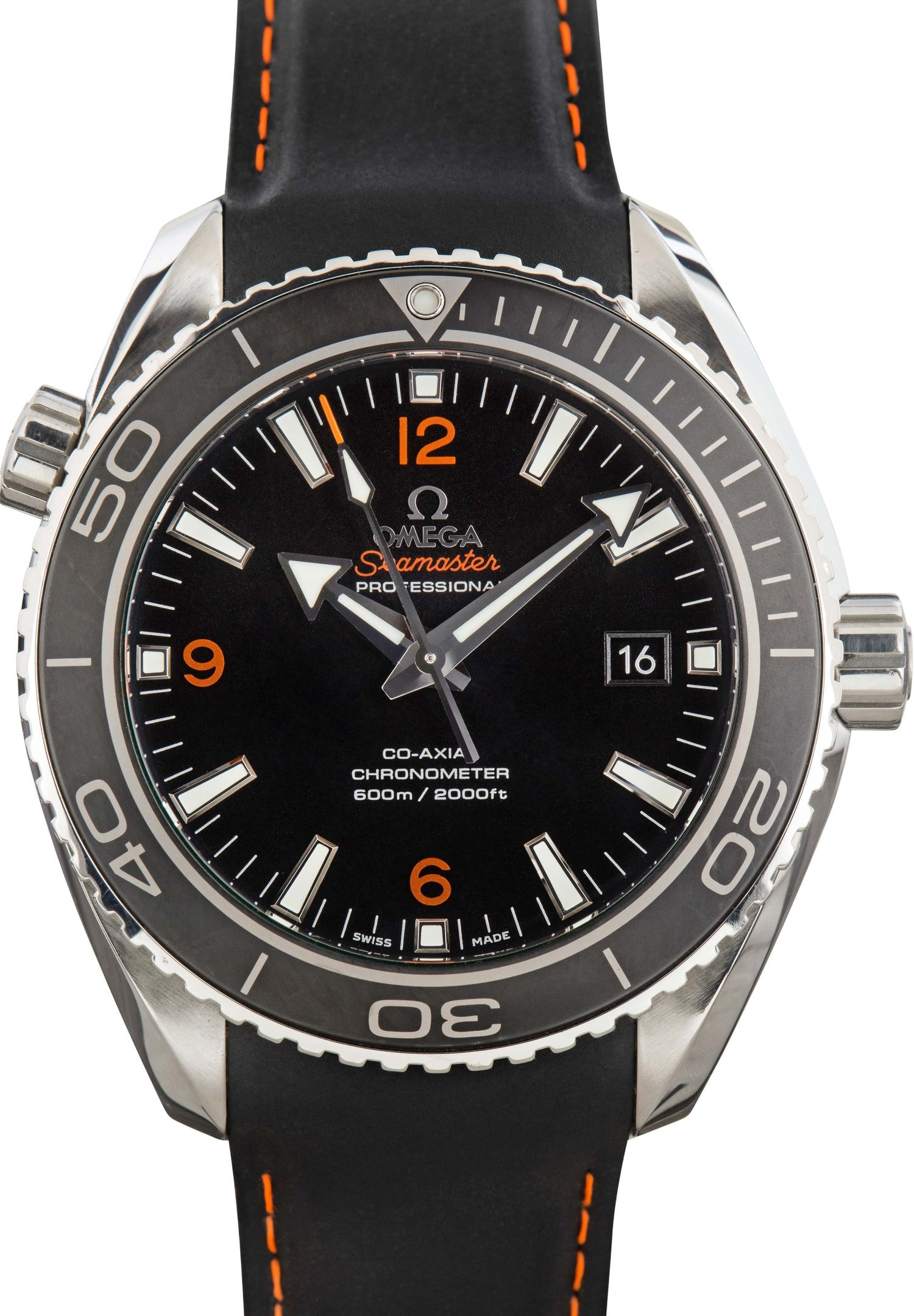 Why We Love This Watch Pre-owned Omega Seamaster Planet Ocean 600M ref 232.32.46.21.01.005 (2016) features a 45.5mm stainless steel case with a black ceramic rotating bezel, black dial with date at 3 o’clock, and scratch-resistant sapphire crystal on a black rubber strap. Powered by the Co-Axial Calibre 8500 chronometer movement visible through the transparent caseback, this professional dive watch offers water resistance to 600m (2,000ft) and includes a helium escape valve, blending bold design with exceptional performance. WATCH DETAILS CREDIT CARD PRICE $5,139.86 BRAND OMEGA MODEL NAME Seamaster COLLECTION NAME Planet Ocean MODEL NUMBER 232.32.46.21.01.005 YEAR 2016 ITEM NUMBER 180829 CONDITION Excellent GENDER Mens BOX & PAPERS Box and Papers CASE MATERIAL Stainless Steel CRYSTAL Sapphire SIZE 46MM BEZEL Ceramic Timing CASEBACK Exhibition SERIAL 87259XXX DIAL Black w/ Arabic hour markers, Luminous hands & Luminous lume MOVEMENT CALIBRE 8500 TYPE Automatic BEZEL Unidirectional COMPLICATION Date BRACELET MATERIAL Rubber TYPE Rubber CLASP Foldover
