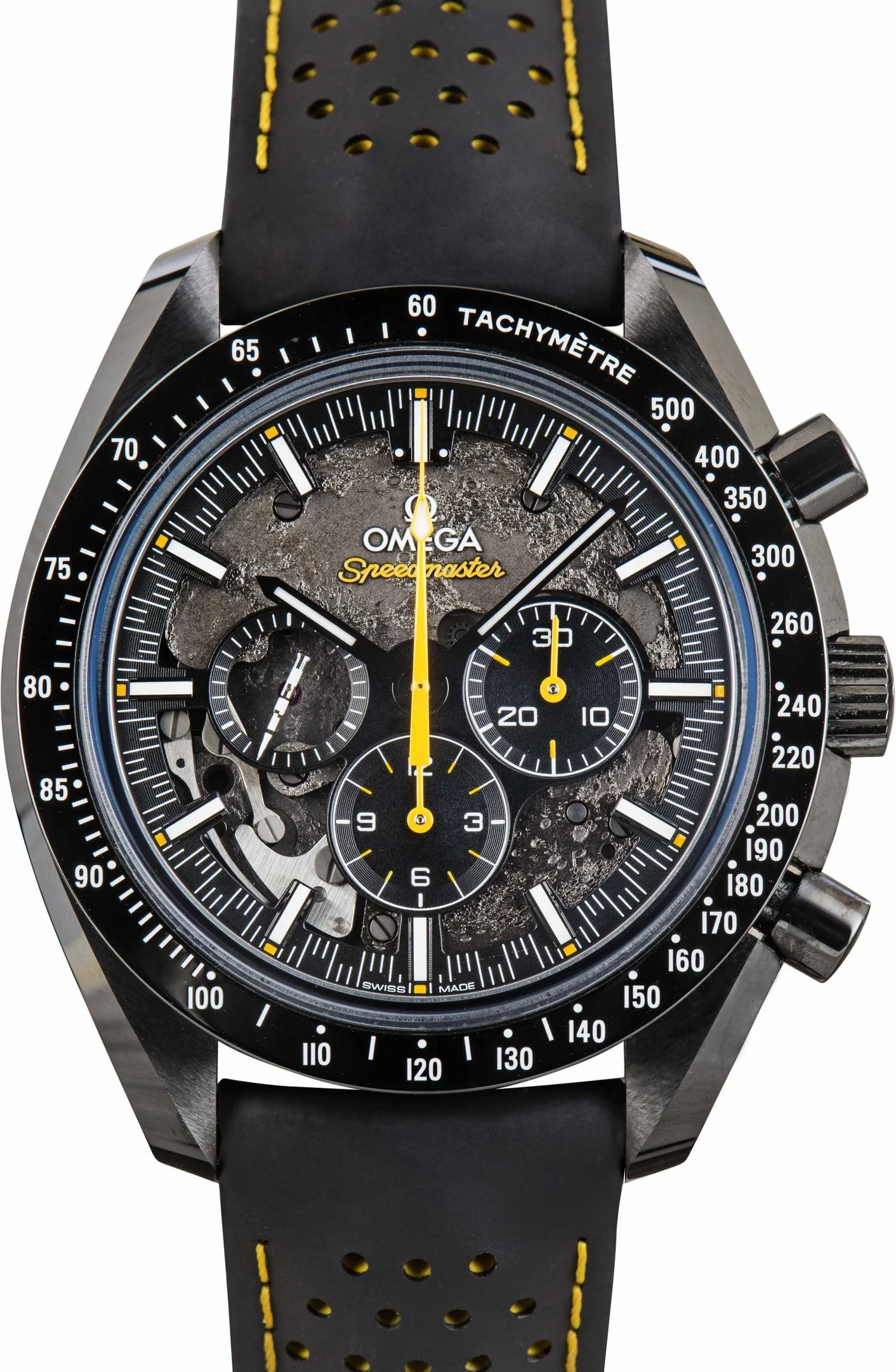 Why We Love This Watch This pre-owned Omega Speedmaster Dark Side of the Moon ref. 310.92.44.50.01.001 (2025) captures the adventurous essence of the Speedmaster with a striking modern design. The 44.25mm black ceramic case, paired with matching ceramic pushers and a tachymeter bezel, creates a bold and cohesive all-black aesthetic. Its black dial features refined detailing that enhances both legibility and depth. Powered by the Co-Axial Master Chronometer Caliber 9900, it ensures exceptional precision, durability, and magnetic resistance. Completed with a black rubber strap, this Speedmaster offers a contemporary, high-performance interpretation of Omega’s iconic chronograph lineage. WATCH DETAILS BRAND OMEGA MODEL NAME Speedmaster COLLECTION NAME Dark Side of the Moon MODEL NUMBER 310.92.44.50.01.001 YEAR 2025 ITEM NUMBER 185830 CONDITION Excellent GENDER Mens BOX & PAPERS Box and Papers CASE MATERIAL Ceramic CRYSTAL Sapphire SIZE 44MM BEZEL Ceramic Tachymetric CASEBACK Exhibition SERIAL A432XXX DIAL Black w/ Index hour markers, Luminous hands & Luminous lume MOVEMENT CALIBRE 1869 TYPE Manual BEZEL Fixed COMPLICATION Chronograph BRACELET MATERIAL Rubber TYPE Rubber CLASP Deployant