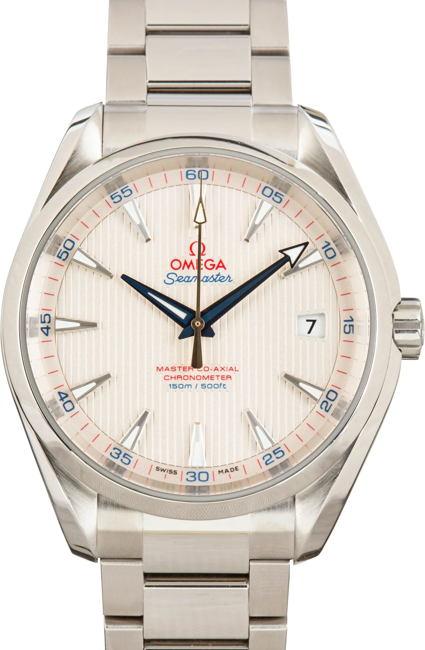 Why We Love This Watch Pre-owned Omega Seamaster Aqua Terra 150M ref. 231.10.42.21.02.004 (2020) blends refined elegance with true everyday versatility. Inspired by OMEGA’s maritime heritage, this model features the instantly recognizable Teak Concept dial, designed to echo the wooden decks of luxury sailboats. The lacquered silvery dial is accented by faceted blue hour and minute hands, while an 18K yellow gold seconds hand adds a subtle pop of contrast and warmth. Housed in a robust 41.5mm stainless steel case and paired with a matching bracelet, this Seamaster is powered by the Master Chronometer-certified Co-Axial Calibre 8500, offering exceptional precision and resistance to magnetic fields up to 15,000 gauss. Visible through a transparent caseback, the movement underscores the technical excellence that makes this Aqua Terra a standout choice for both sport and sophistication. WATCH DETAILS CREDIT CARD PRICE $4,728.26 BRAND OMEGA MODEL NAME Seamaster COLLECTION NAME Aqua Terra MODEL NUMBER 231.10.42.21.02.004 YEAR 2020 ITEM NUMBER 185618 CONDITION Excellent GENDER Mens BOX & PAPERS Box and Papers CASE MATERIAL Stainless Steel CRYSTAL Sapphire SIZE 42MM BEZEL Stainless Steel Smooth CASEBACK Exhibition SERIAL 87578XXX DIAL Silver w/ Index hour markers, Luminous hands & Luminous lume MOVEMENT CALIBRE 8500 TYPE Automatic BEZEL Fixed COMPLICATION Date BRACELET MATERIAL Stainless Steel CLASP Butterfly