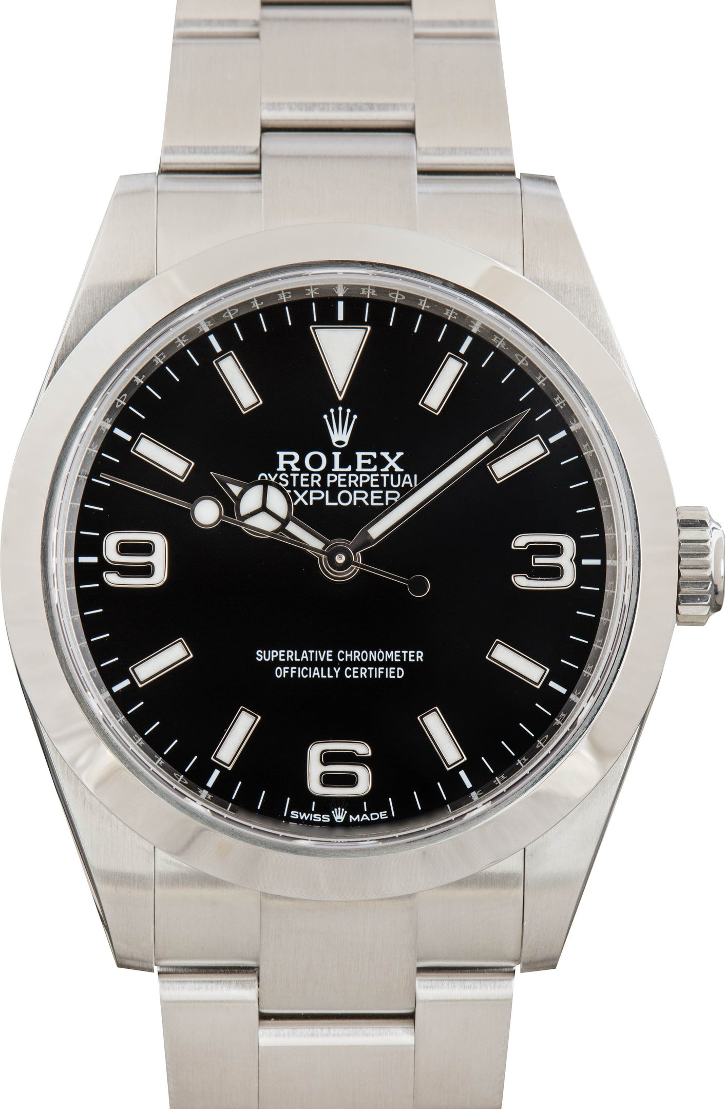 Why We Love This Watch Built for those who move with purpose, the Rolex Explorer ref. 224270 (2024) stands as a testament to clean design and dependable performance. With roots in some of the world’s most demanding environments, this 36mm Explorer channels the spirit of exploration in a refined, no-nonsense form. Celebrated for its versatility and rugged heritage, it’s a true tool watch—crafted with precision, built to endure, and designed to go wherever the mission leads. WATCH DETAILS CREDIT CARD PRICE $9,461.66 BRAND Rolex MODEL NAME Explorer 40 COLLECTION Explorer MODEL NUMBER 224270 YEAR 2024 ITEM NUMBER 183200 CONDITION Excellent GENDER Mens BOX & PAPERS Box and Papers CASE MATERIAL Stainless Steel CRYSTAL Sapphire SIZE 40MM BEZEL Stainless Steel Smooth CASEBACK Solid SERIAL X6941XXX DIAL Black w/ Arabic hour markers, Chromalight hands & Chromalight lume MOVEMENT CALIBRE 3230 TYPE Automatic BEZEL Fixed COMPLICATION No Date BRACELET MATERIAL Stainless Steel TYPE Oyster CLASP Oysterlock