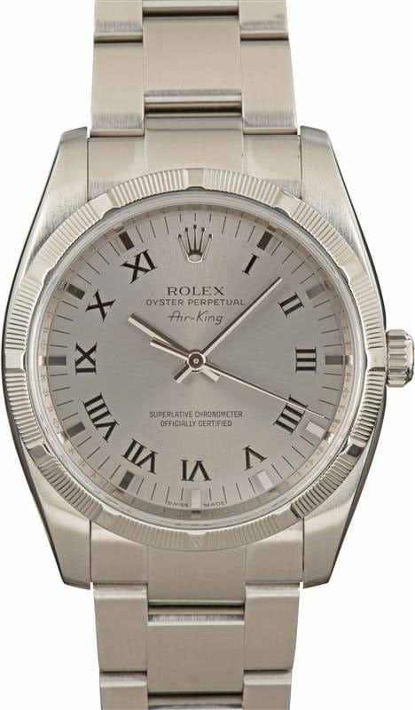 WATCH DETAILS CREDIT CARD PRICE $6,683.36 BRAND Rolex MODEL NAME Air-King MODEL NUMBER 114210 ITEM NUMBER 163823 CONDITION Excellent GENDER Mens BOX & PAPERS Box and Papers CASE MATERIAL Stainless Steel CRYSTAL Sapphire SIZE 34mm BEZEL Stainless Steel Engine Turned MOVEMENT TYPE Automatic BRACELET MATERIAL Stainless Steel TYPE Oyster