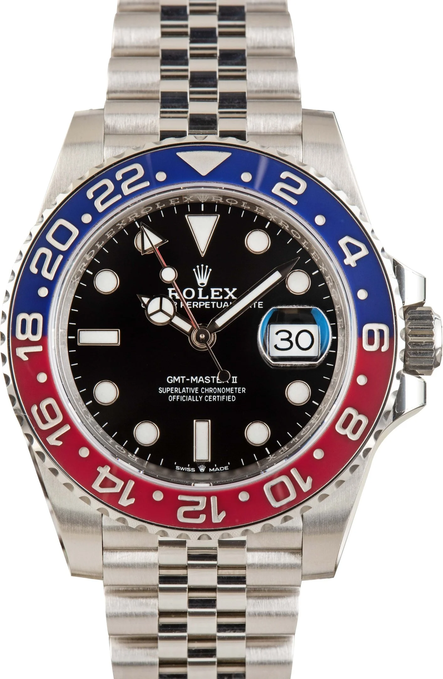 Why We Love This Watch This pre-owned Rolex GMT-Master II ref 126710BLRO (2020) captures the spirit of adventure with its iconic red and blue Cerachrom “Pepsi” bezel. Crafted from Oystersteel, it features a 40mm case paired with a Jubilee bracelet for a refined yet durable look. Powered by the Caliber 3285 automatic movement, it delivers dual time-zone functionality, a 70-hour power reserve, and Superlative Chronometer precision. Combining robust performance with unmistakable style, this GMT-Master II remains a favorite among travelers and collectors. WATCH DETAILS CREDIT CARD PRICE $23,661.86 BRAND Rolex MODEL NAME GMT-Master II COLLECTION GMT-Master MODEL NUMBER 126710 NICKNAME Pepsi YEAR 2020 ITEM NUMBER 183259 CONDITION Excellent GENDER Mens BOX & PAPERS Box and Papers CASE MATERIAL Stainless Steel CRYSTAL Sapphire SIZE 40MM BEZEL Ceramic 24-hour CASEBACK Solid SERIAL 07S33XXX DIAL Black w/ Luminous hour markers, Chromalight hands & Chromalight lume MOVEMENT CALIBRE 3285 TYPE Automatic BEZEL Bidirectional COMPLICATION Date BRACELET MATERIAL Stainless Steel TYPE Jubilee CLASP Oysterlock