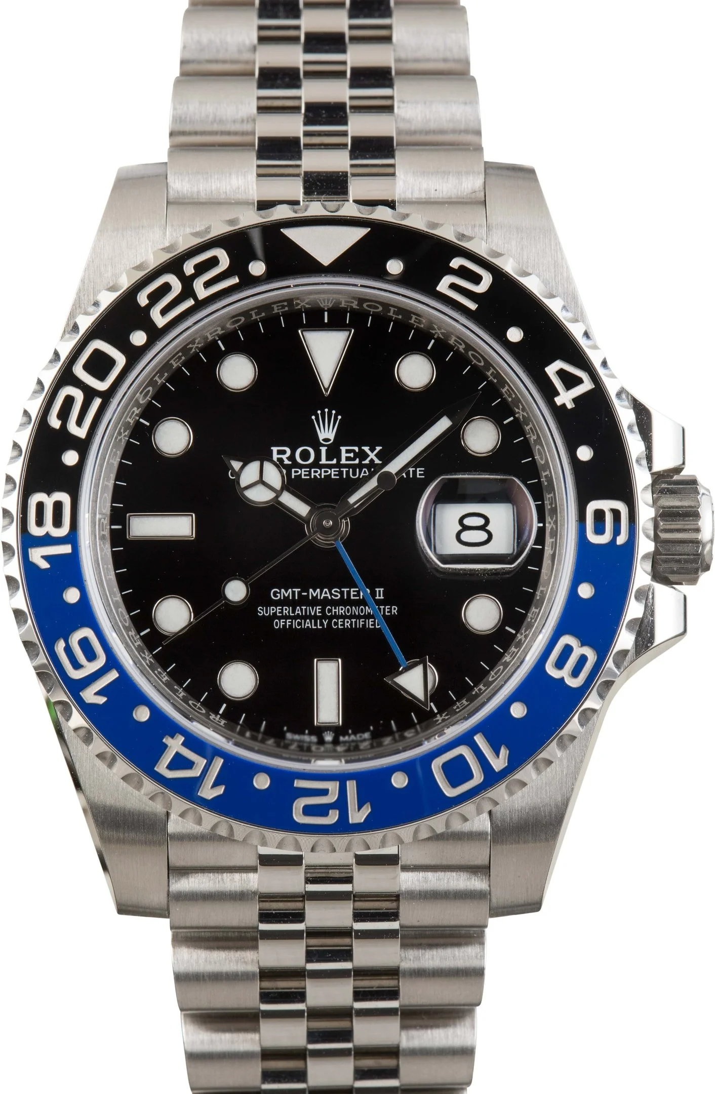 Why We Love This Watch This pre-owned Rolex GMT-Master II ref. 126710BLNR (2019), nicknamed the “Batgirl,” combines modern sophistication with Rolex’s signature travel-ready functionality. It features a 40mm stainless steel case and a distinctive black-and-blue Cerachrom bezel designed for effortless dual-time tracking. The black Chromalight dial ensures outstanding legibility in all conditions, while the Rolex Caliber 3285 automatic movement delivers precision and reliability. Fitted with an elegant Jubilee bracelet, this GMT-Master II perfectly balances durability, comfort, and style—making it a standout choice for those who value both performance and distinction. WATCH DETAILS BRAND Rolex MODEL NAME GMT-Master II COLLECTION GMT-Master MODEL NUMBER 126710 NICKNAME Batgirl YEAR 2019 ITEM NUMBER 184308 CONDITION Excellent GENDER Mens BOX & PAPERS Box and Papers CASE MATERIAL Stainless Steel CRYSTAL Sapphire SIZE 40MM BEZEL Ceramic 24-hour CASEBACK Solid SERIAL 3Z240XXX DIAL Black w/ Luminous hour markers, Chromalight hands & Chromalight lume MOVEMENT CALIBRE 3285 TYPE Automatic BEZEL Bidirectional COMPLICATION Date BRACELET MATERIAL Stainless Steel TYPE Jubilee CLASP Oysterlock