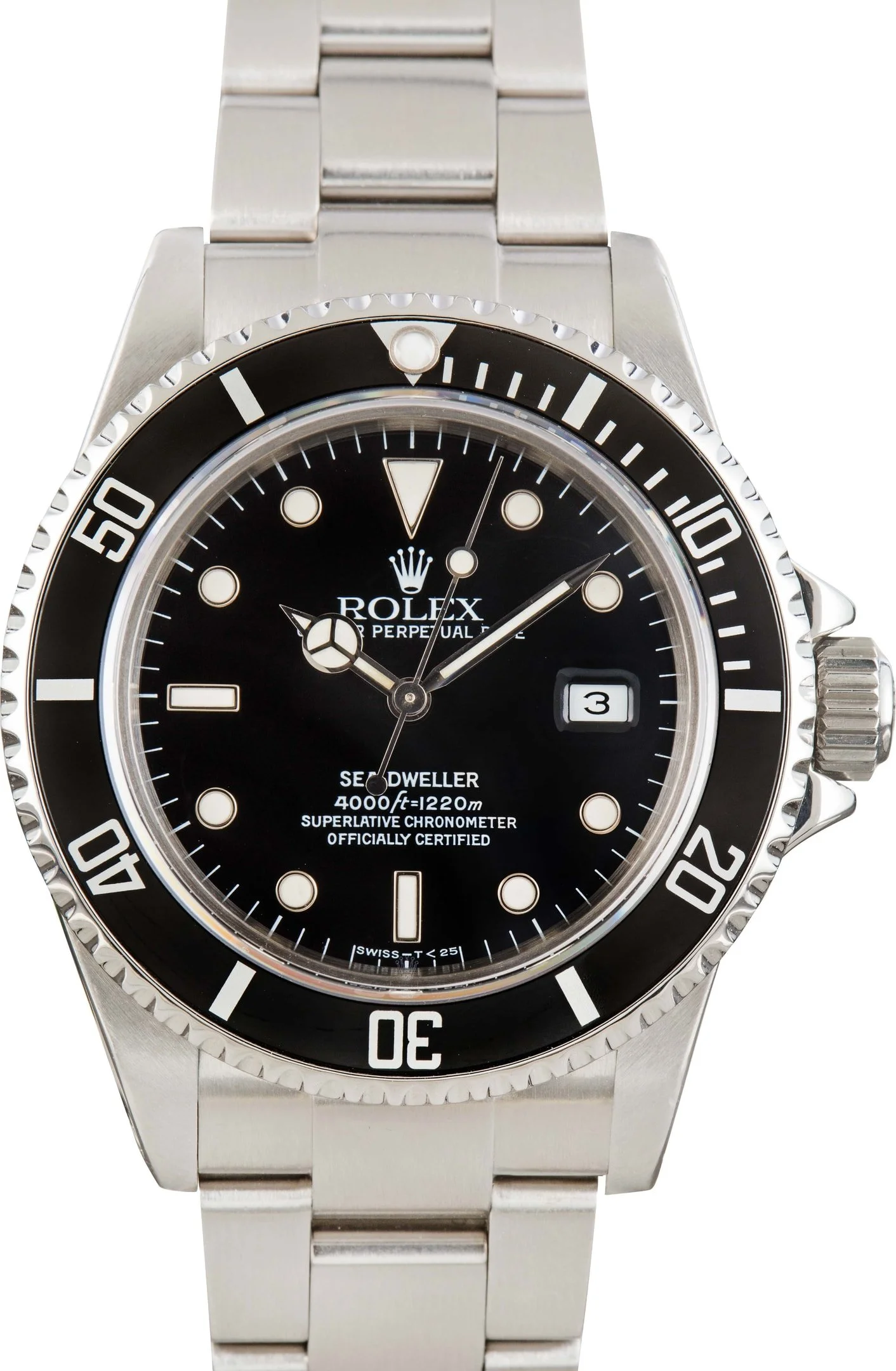 Why We Love This Watch This pre-owned Rolex Sea-Dweller ref. 16660 (1984) is a professional-grade dive watch featuring a 40mm stainless steel case and a black timing bezel. Its black tritium dial showcases the vintage character of early Sea-Dweller models, while the Oyster bracelet adds strength and comfort. Powered by the Rolex Caliber 3035, this watch delivers reliability and enduring performance, making it a timeless piece for collectors and dive watch enthusiasts. WATCH DETAILS BRAND Rolex MODEL NAME Sea-Dweller MODEL NUMBER 16660 YEAR 1984 ITEM NUMBER 181886 CONDITION Excellent GENDER Mens BOX & PAPERS No Box or Papers CASE MATERIAL Stainless Steel CRYSTAL Sapphire SIZE 40MM BEZEL Aluminum Timing CASEBACK Solid SERIAL 8350XXX DIAL Black w/ Tritium hour markers, Tritium hands & Tritium lume MOVEMENT CALIBRE 3035 TYPE Automatic BEZEL Unidirectional COMPLICATION Date BRACELET MATERIAL Stainless Steel TYPE Oyster CLASP Fliplock