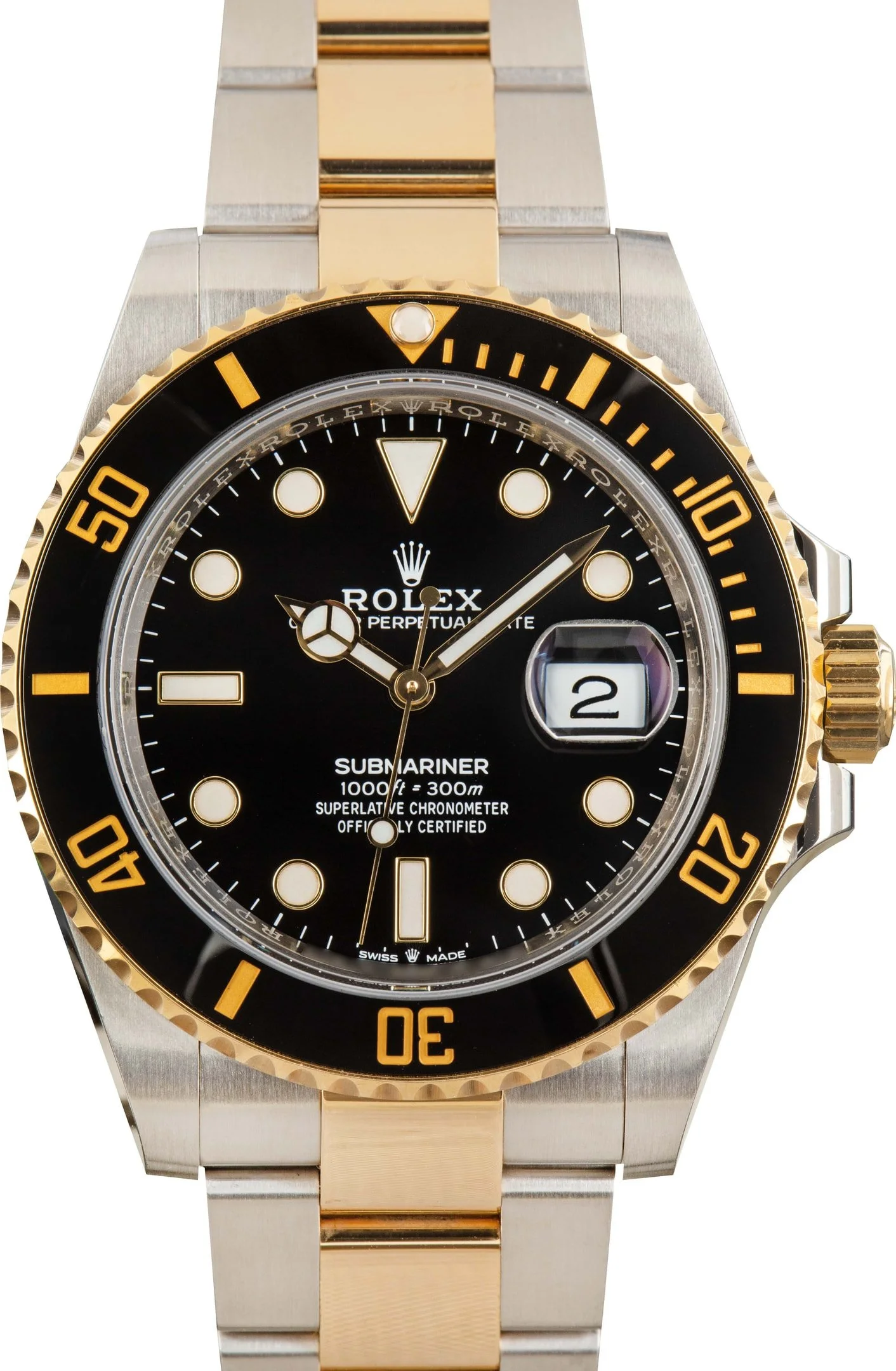 Why We Love This Watch This used Rolex Submariner ref. 126613LN (2020 - 2025) is a striking fusion of technical mastery and refined elegance. Presented in a 41mm case crafted from resilient Oystersteel and 18k yellow gold, it features a unidirectional black Cerachrom bezel framing a sleek black dial enhanced with Chromalight luminescence for flawless readability in any light. The iconic Oyster bracelet ensures both comfort and sophistication, while the self-winding Caliber 3235 movement delivers a robust 70-hour power reserve and precision performance. Water-resistant to 300 meters, this distinguished two-tone Submariner embodies the perfect balance of luxury and professional-grade diving capability. WATCH DETAILS CREDIT CARD PRICE $18,516.86 BRAND Rolex MODEL NAME Submariner MODEL NUMBER 126613 ITEM NUMBER 184472 CONDITION Excellent GENDER Mens BOX & PAPERS Box Only CASE MATERIAL Steel and Gold CRYSTAL Sapphire SIZE 41MM BEZEL Ceramic Timing CASEBACK Solid SERIAL 5374QXXX DIAL Black w/ Luminous hour markers, Chromalight hands & Chromalight lume MOVEMENT CALIBRE 3235 TYPE Automatic BEZEL Unidirectional COMPLICATION Date BRACELET MATERIAL Two-Tone TYPE Oyster CLASP Glidelock
